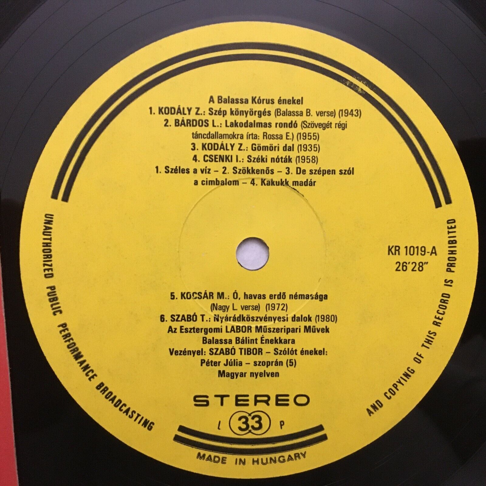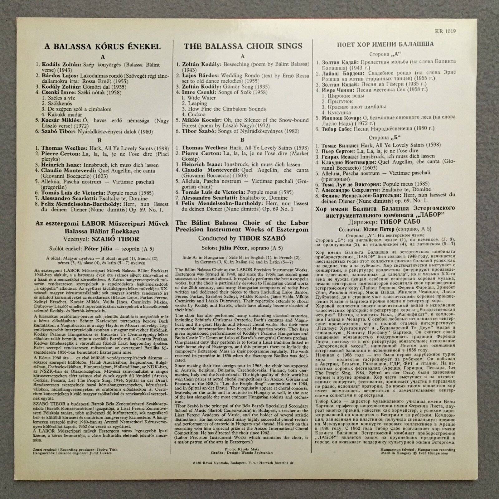 S287 The Balassa Choir Sings Kodaly Scarlatti Monteverdi Szabo KR 1019 Stereo
