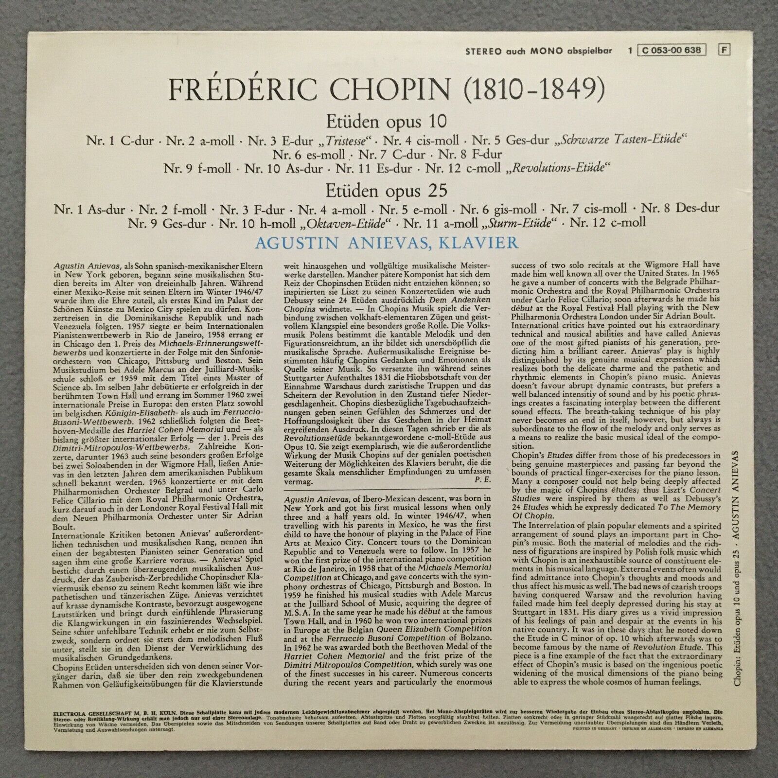 S290 Chopin Etudes Anievas Piano EMI 1 C 053-00 638 Stereo