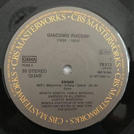 G619 Puccini Edgar Scotto Bergonzi Queler 2LP CBS Masterworks 79213 Stereo