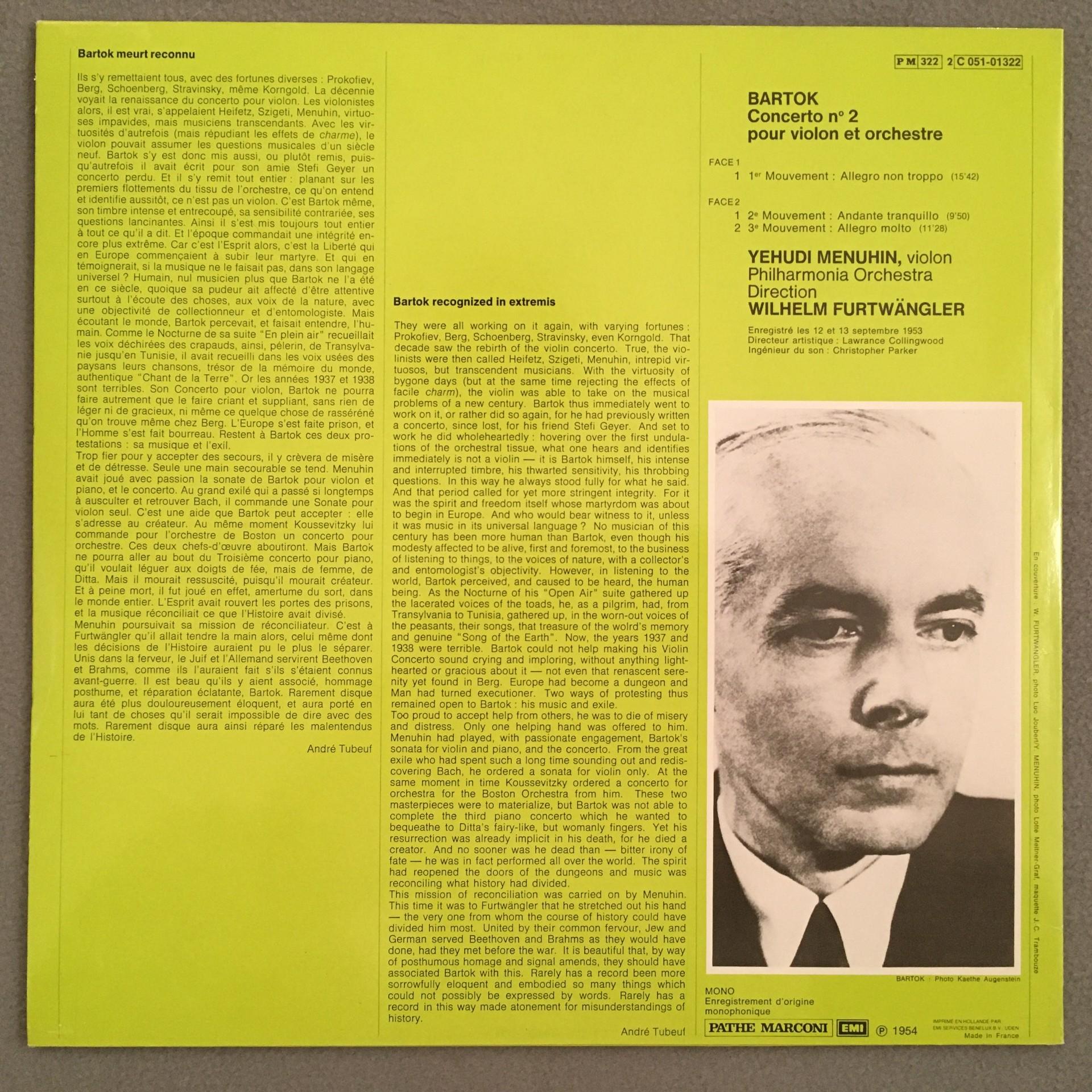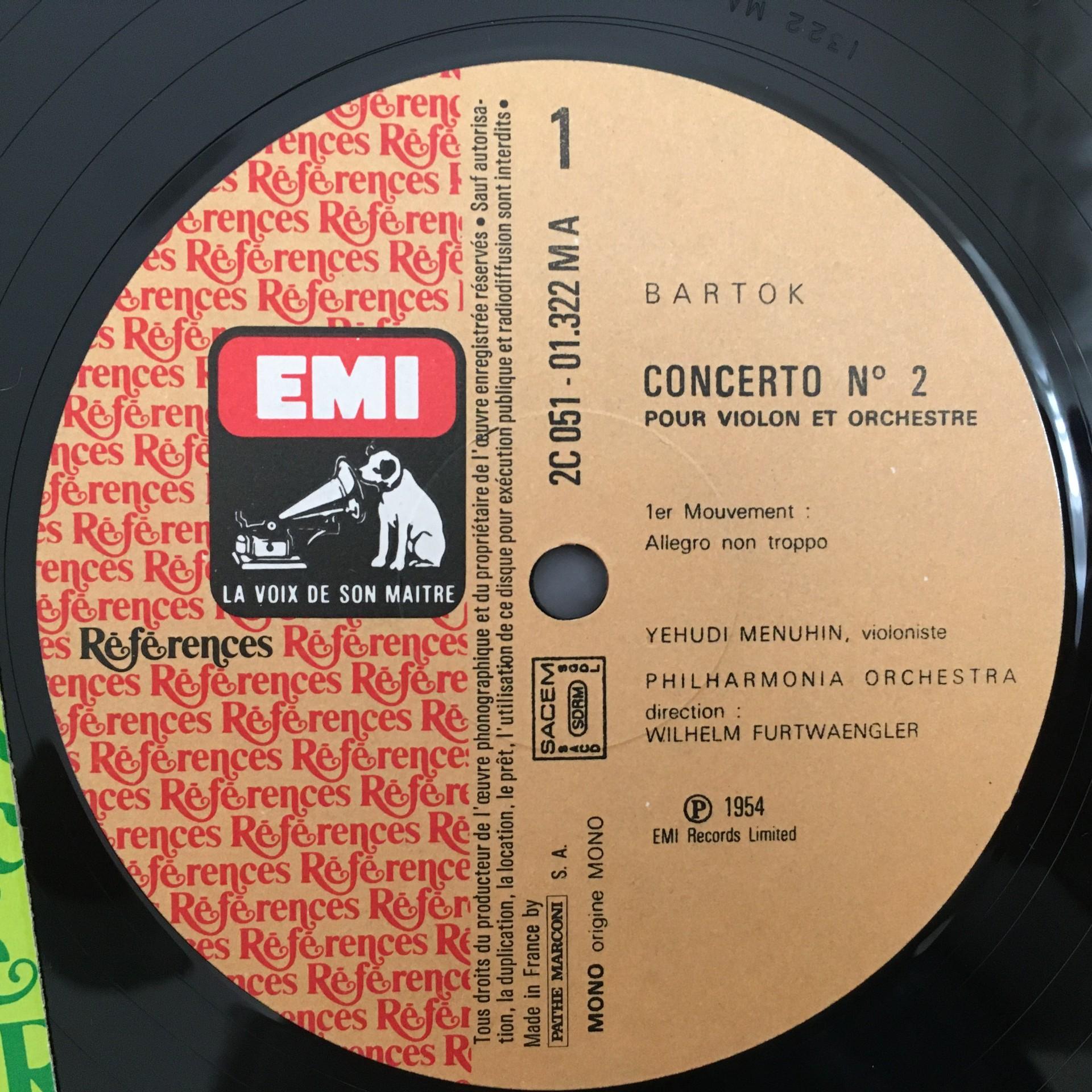 O659 Bartok Violin Concerto No.2 Menuhin Furtwaengler EMI 2 C 051-01322--