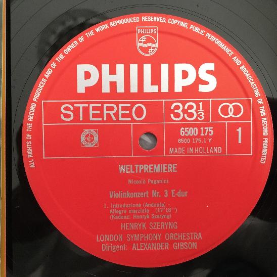 O663 Paganini Violin Concerto No.3 Szeryng Gibson Philips 6500 175 Stereo