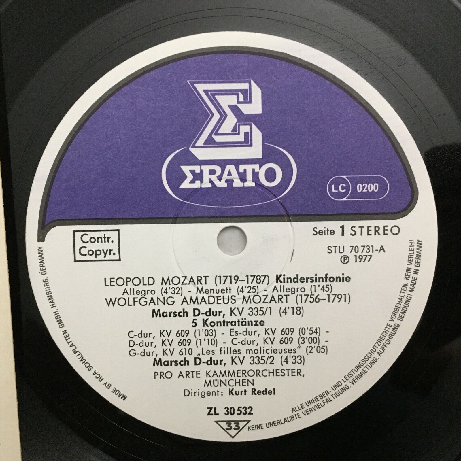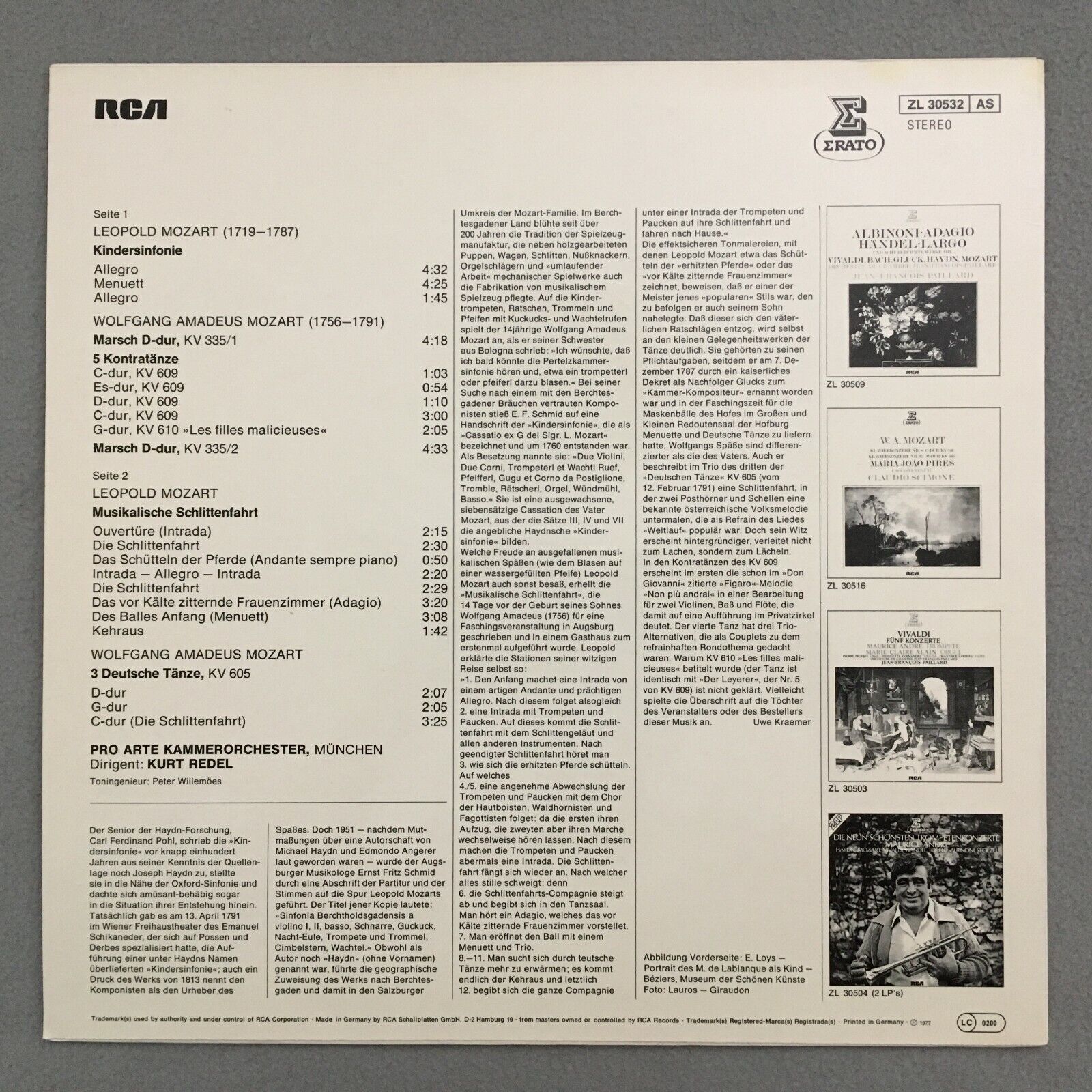 S607 L. & W. Mozart Childrens Symphony Redel Erato ZL 30532 AS Stereo