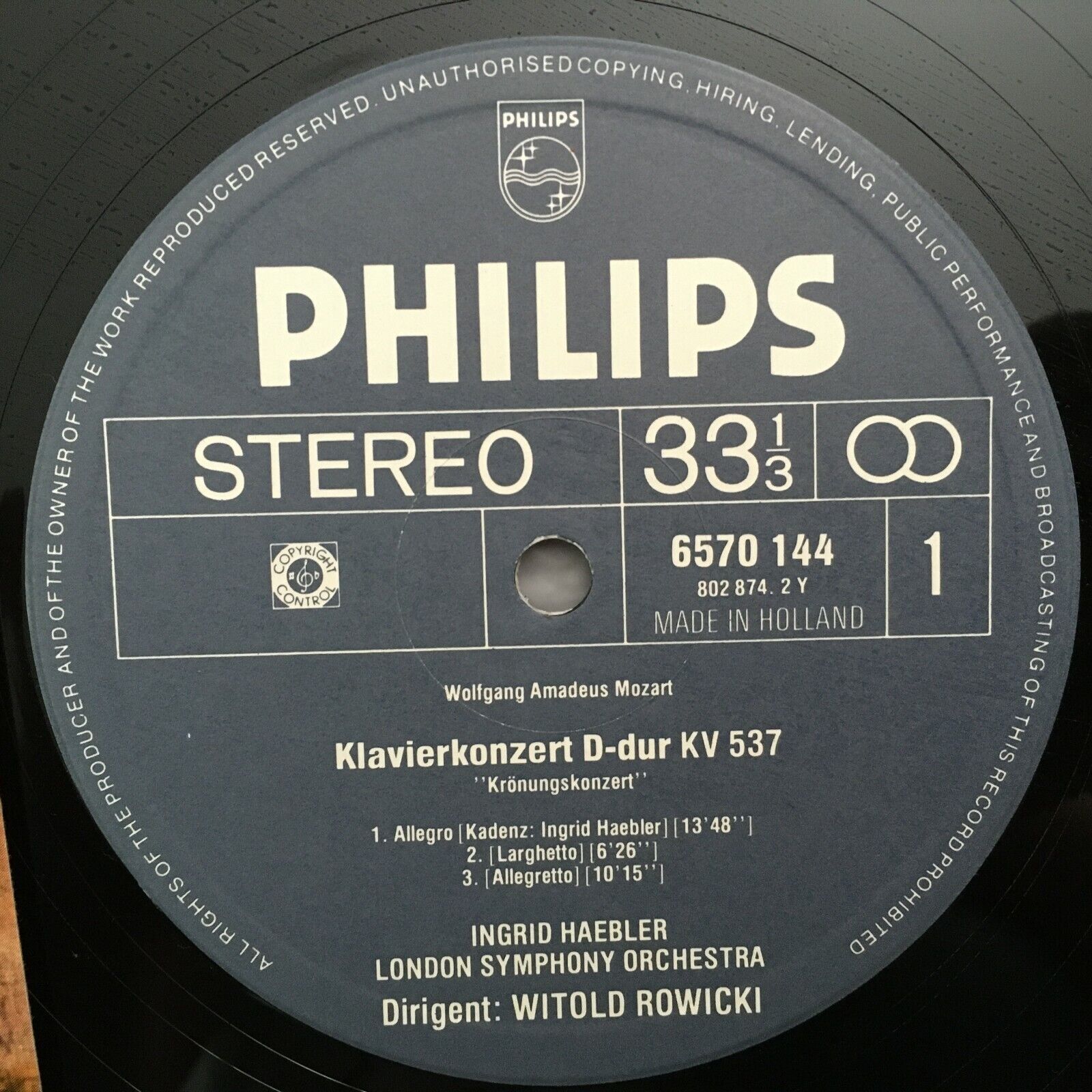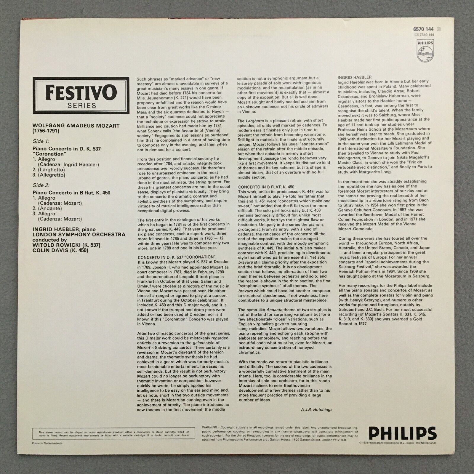S608 Mozart Coronation Concerto Haebler Davis Rowicki Philips 6570 144 Stereo