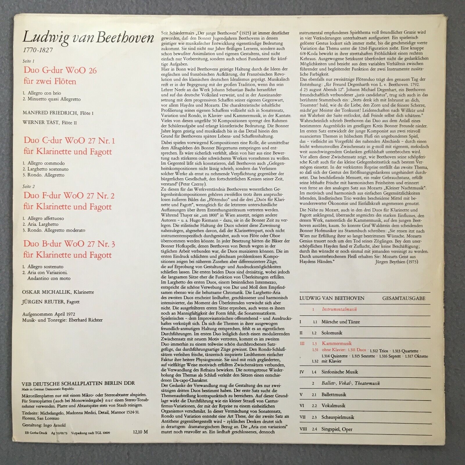 S385 Beethoven Clarinet & Fagott Duos Flute Duo Friedrich Eterna 8 26 384 Stereo