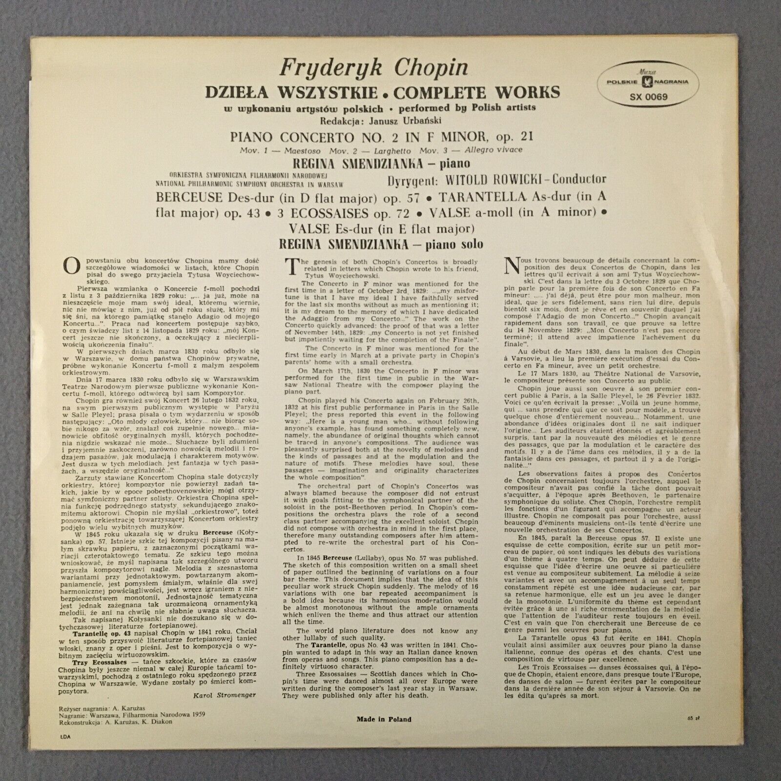 S249 Chopin complete Works Piano Concerto Smendzianka MUZA SX 0069 Stereo