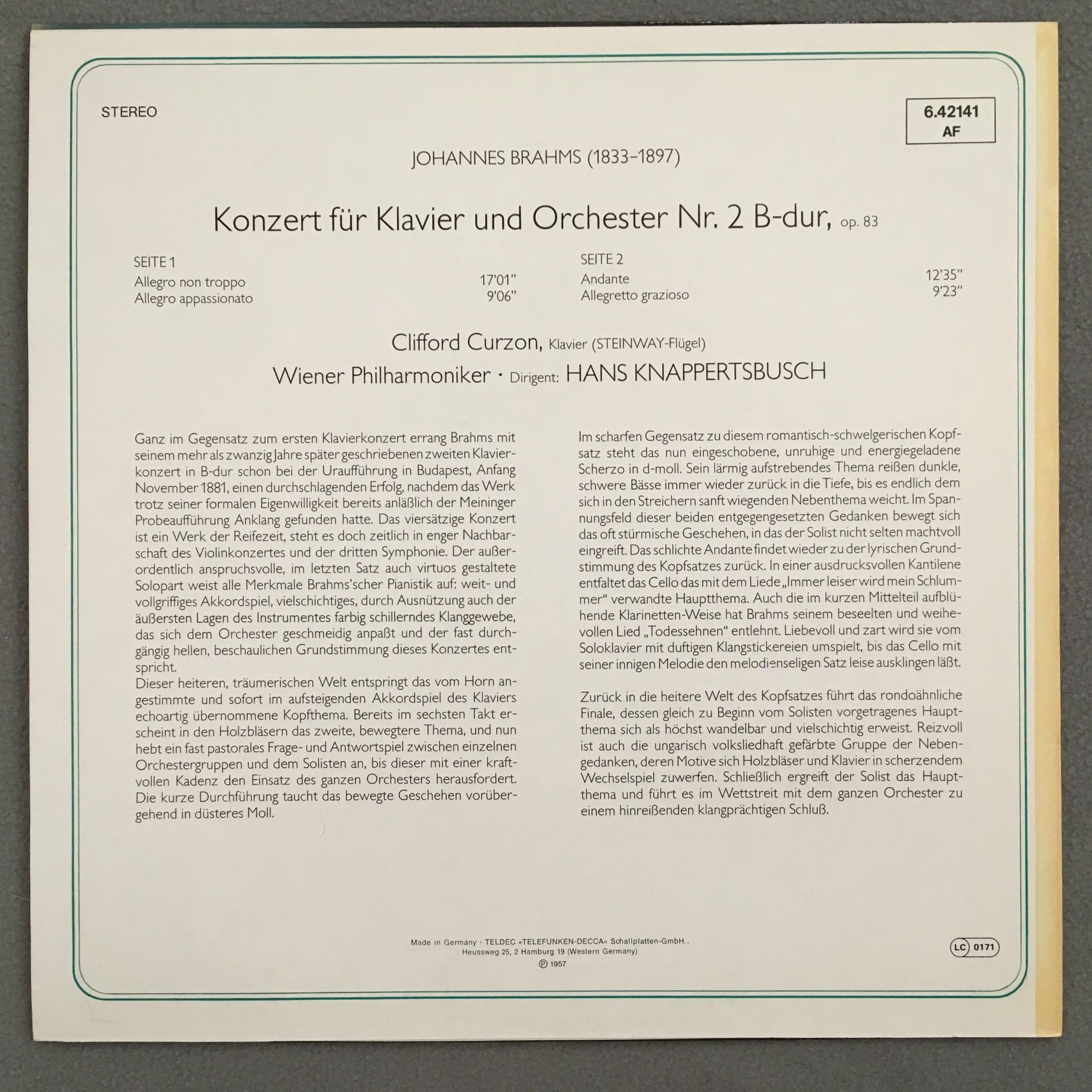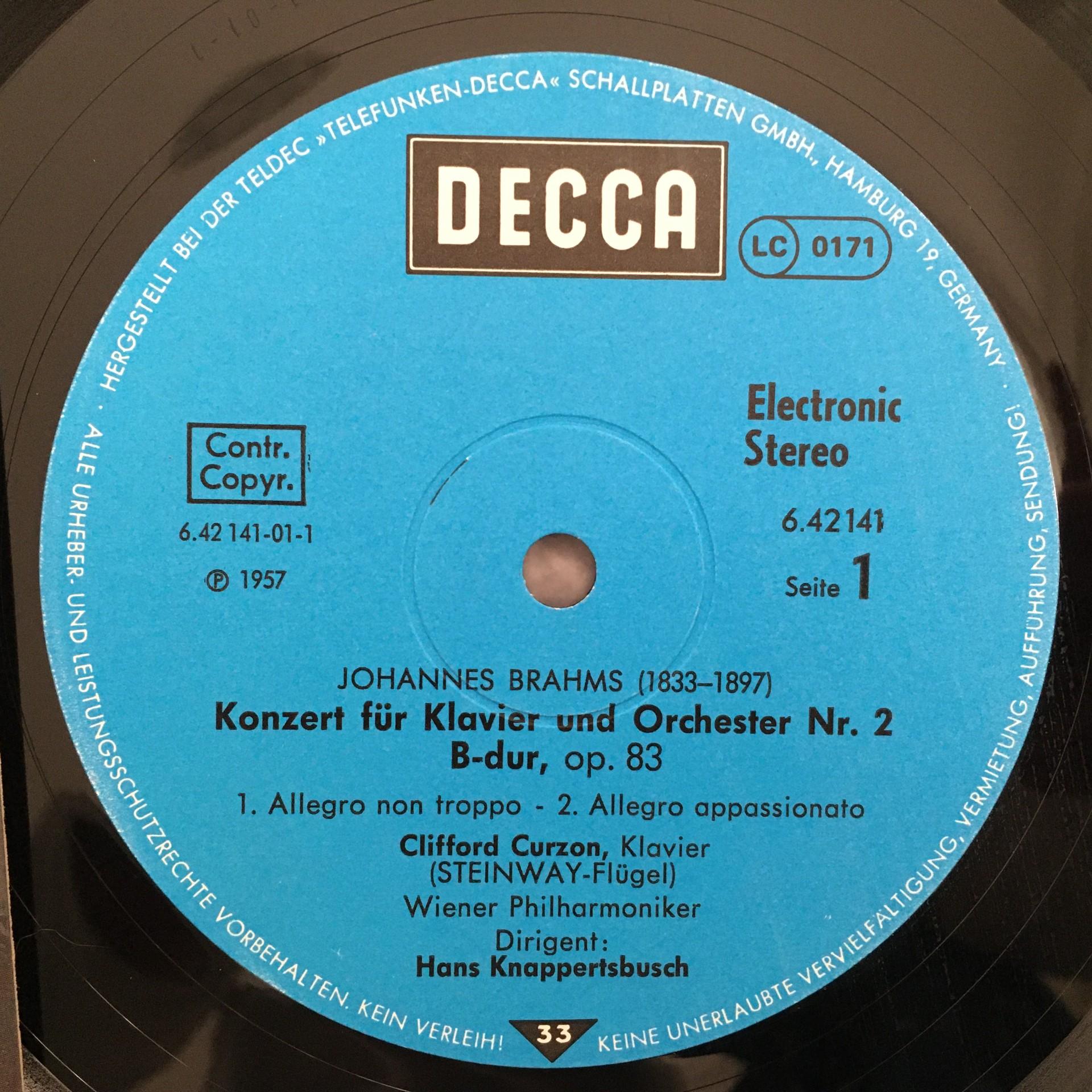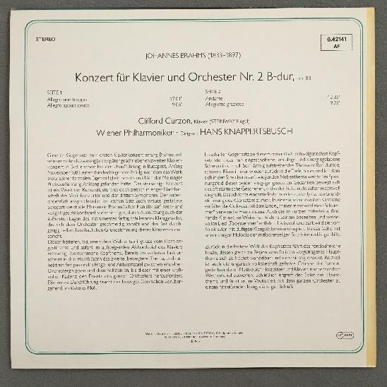 O667 Brahms Piano Concerto Curzon Knappertsbusch VPO DECCA 6.42141 AF Stereo