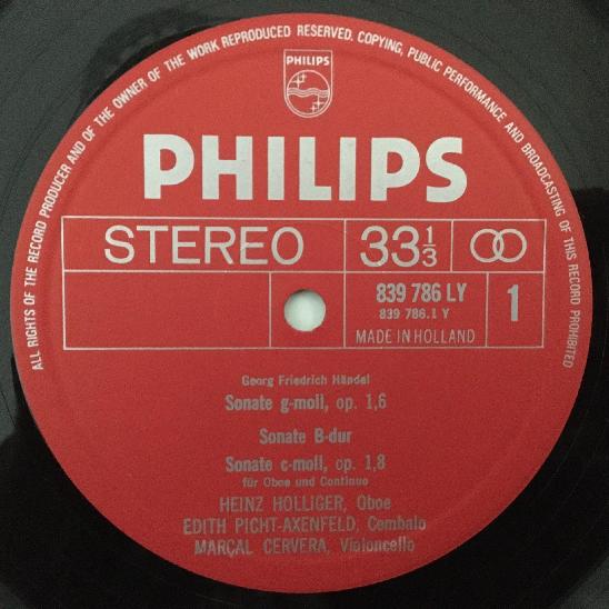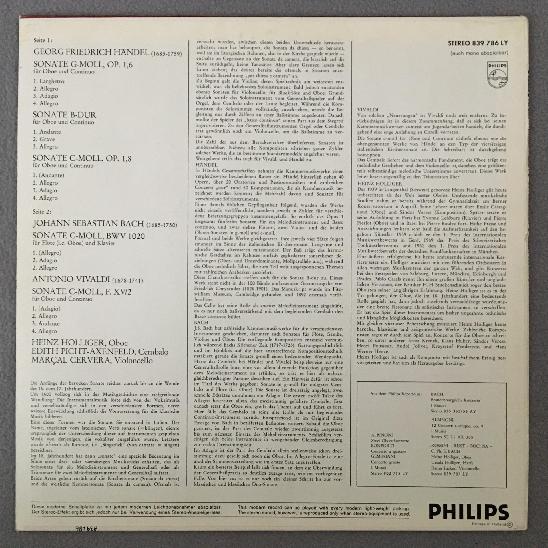 O671 Handel Vivaldi Bach Oboe Sonatas Holliger Cervera Philips 839 786 LY Stereo