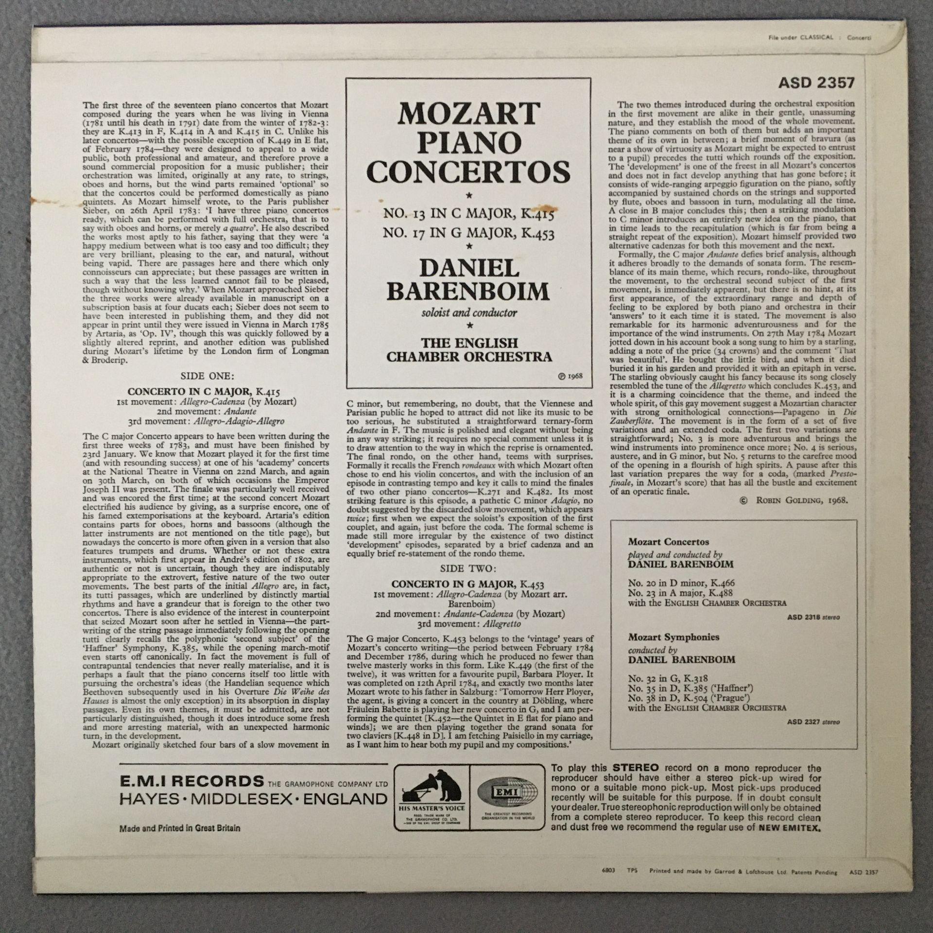 O681 Mozart Piano Concertos Barenboim EMI ASD 2357 Stereo
