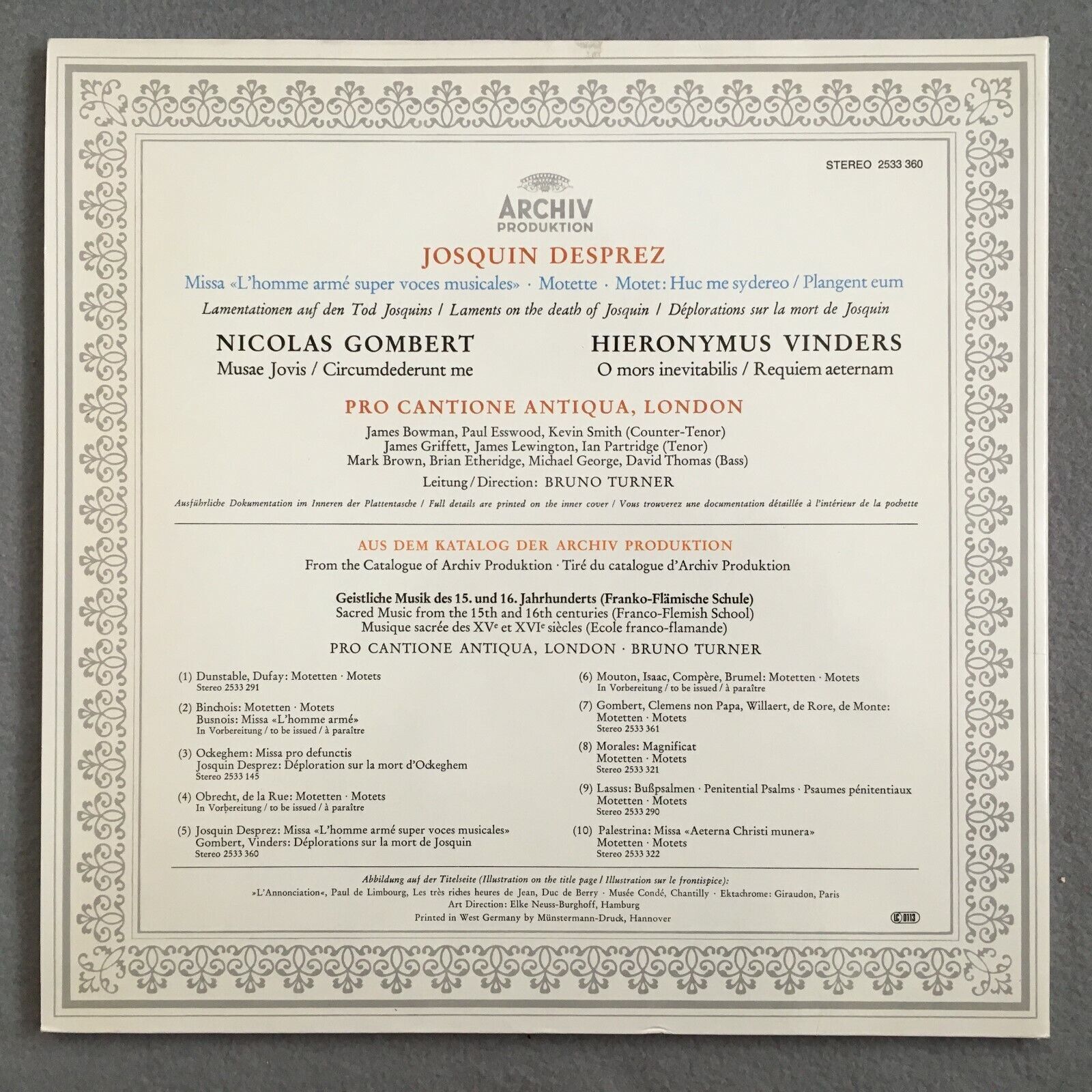 J129 Desprez Mass, Motet Gombert Smith Thomas Turner Archiv DGG 2533 360 Stereo