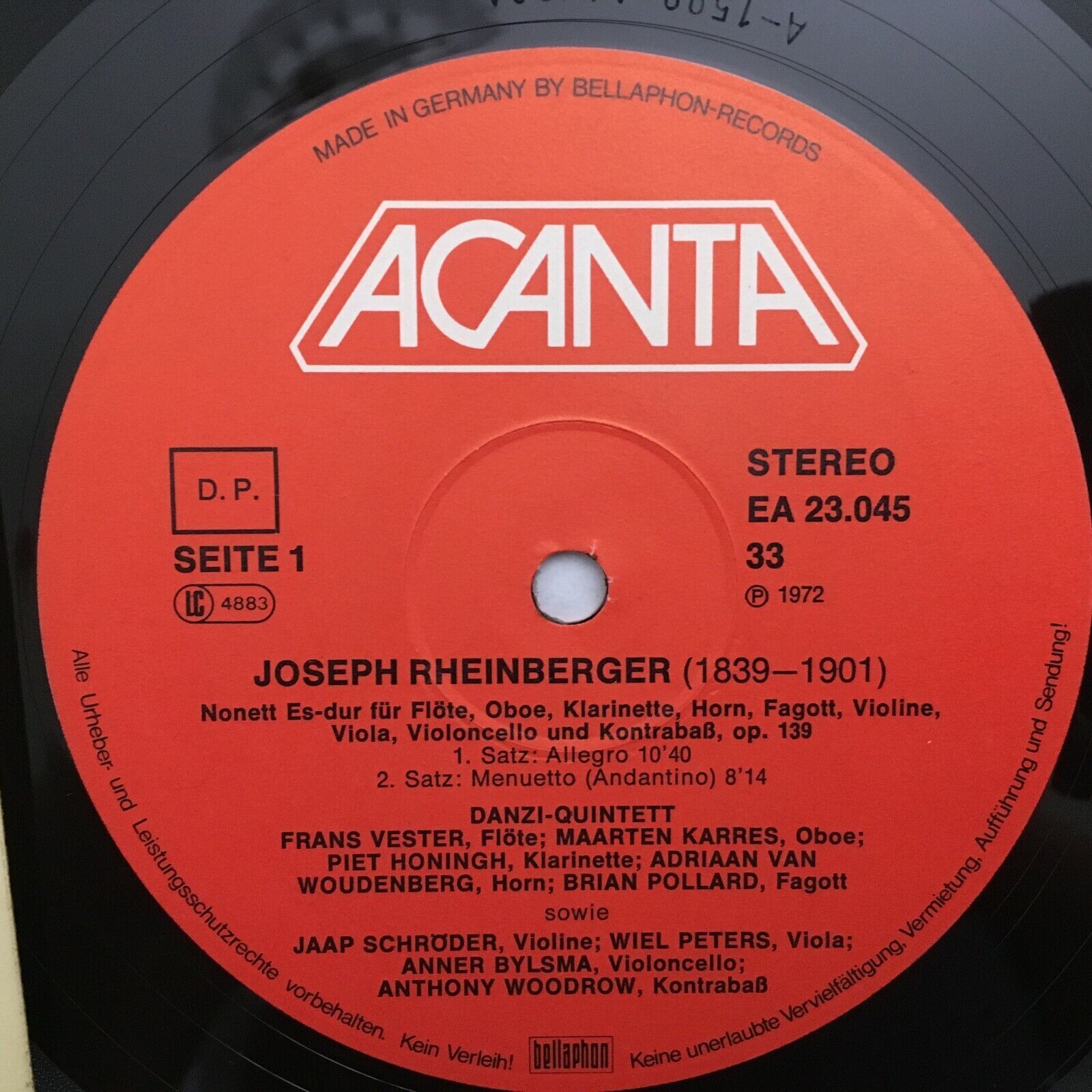 J133 Rheinberger Nonet Danzi Quintet Schröder Bylsma Acanta EA 23.045 Stereo