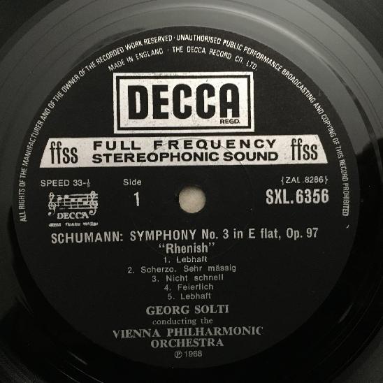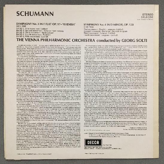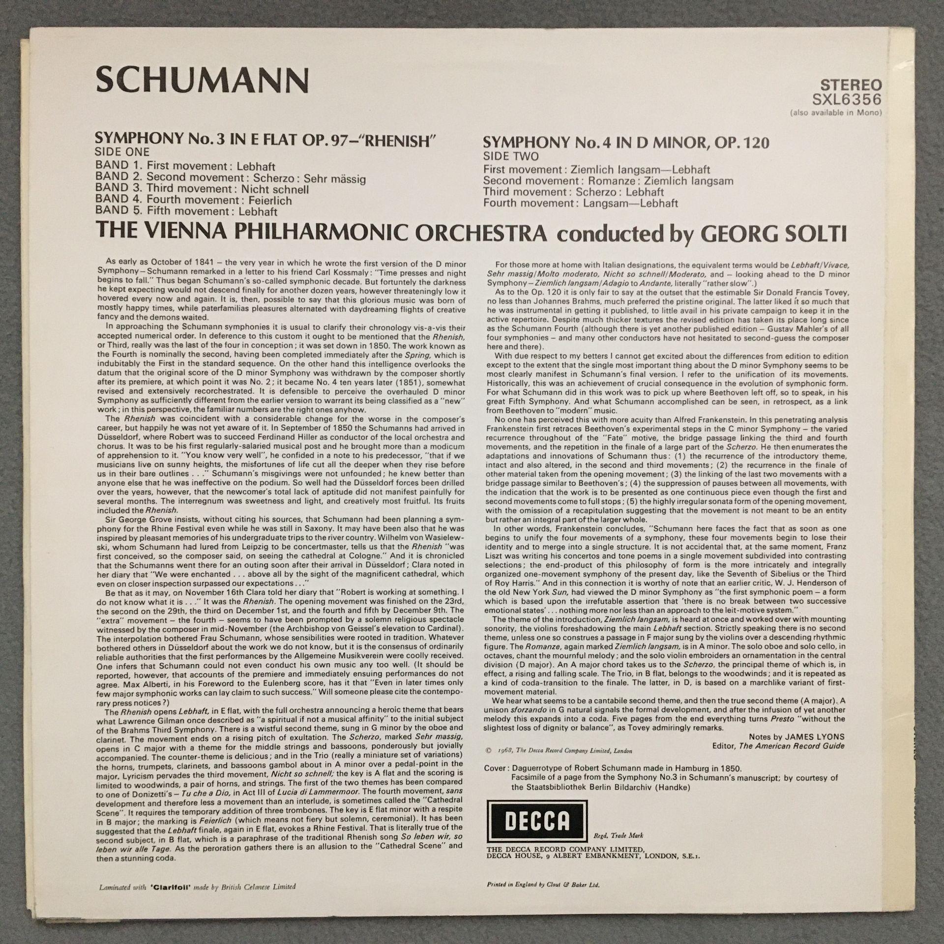 O693 Schumann Symphonies No.3 & No.4 Solti VPO DECCA SXL 6356 Stereo