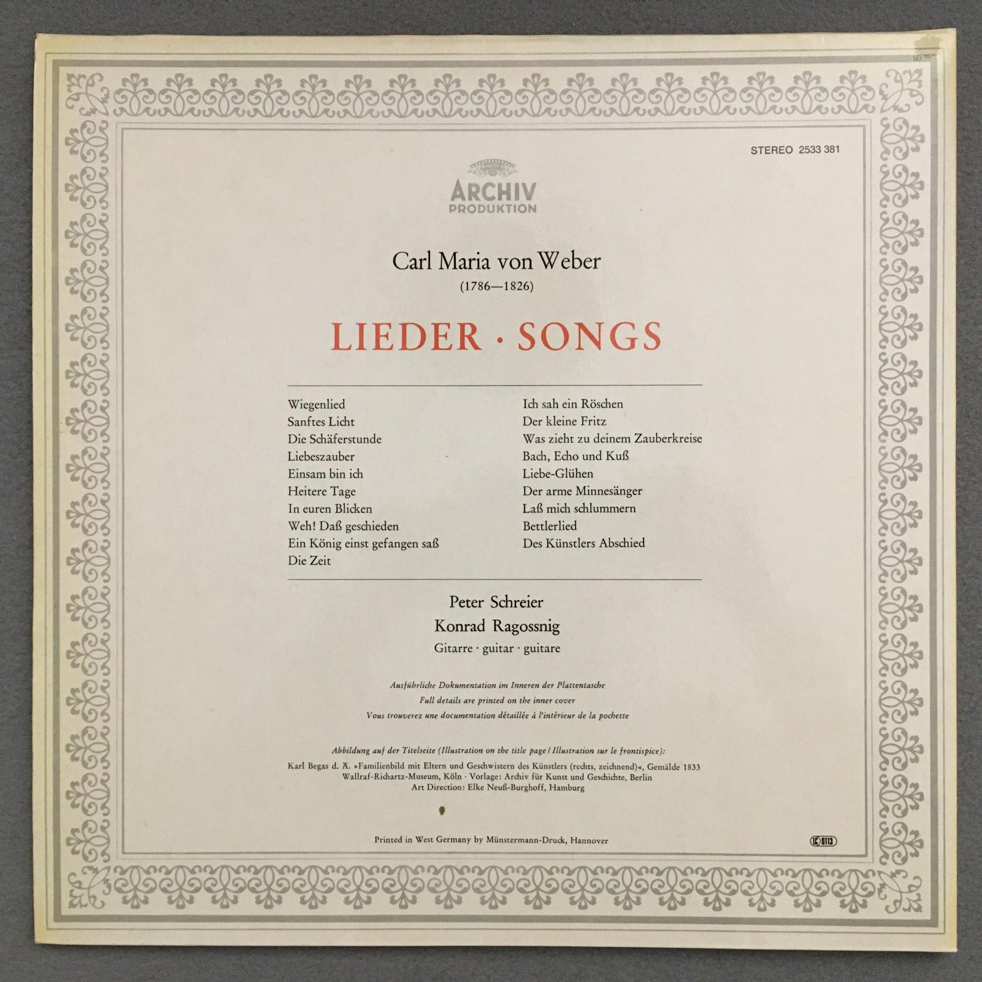 O702 von Weber Songs Schreier Ragossnig Guitar DGG Archiv 2533 381 Stereo