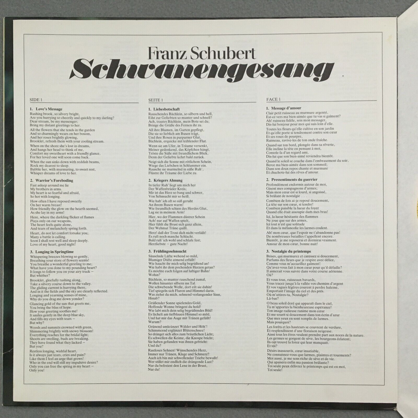 S576 Schubert Swan Singing Prey Hokanson DGG 2531 325 Stereo
