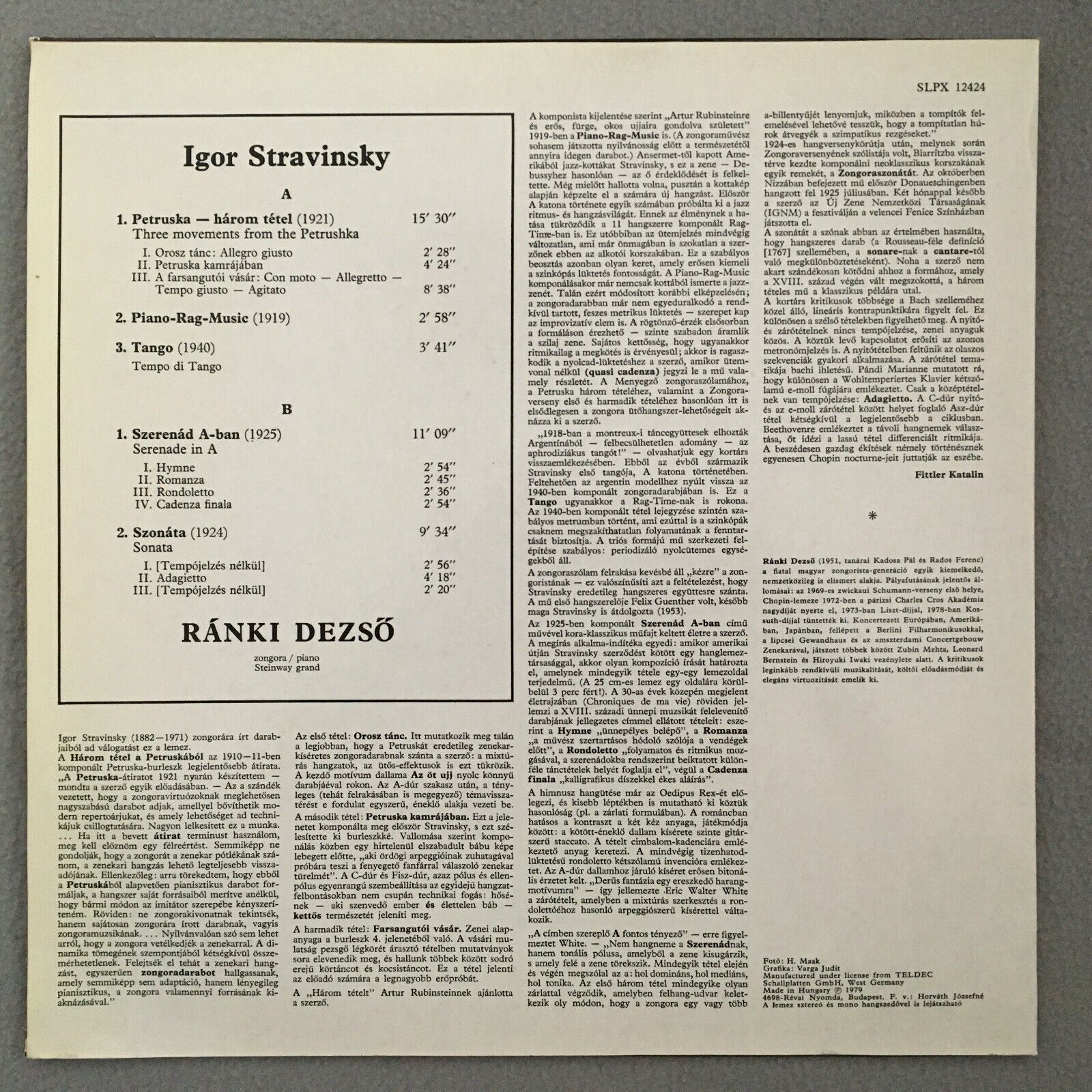 S100 Stravinsky Petruska Sonata Tabgo Dezso Piano Hungaroton SLPX 12424 Stereo