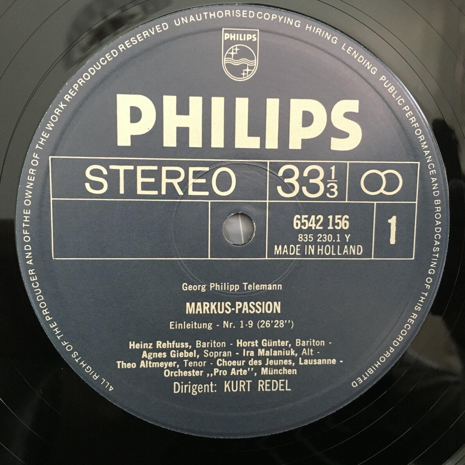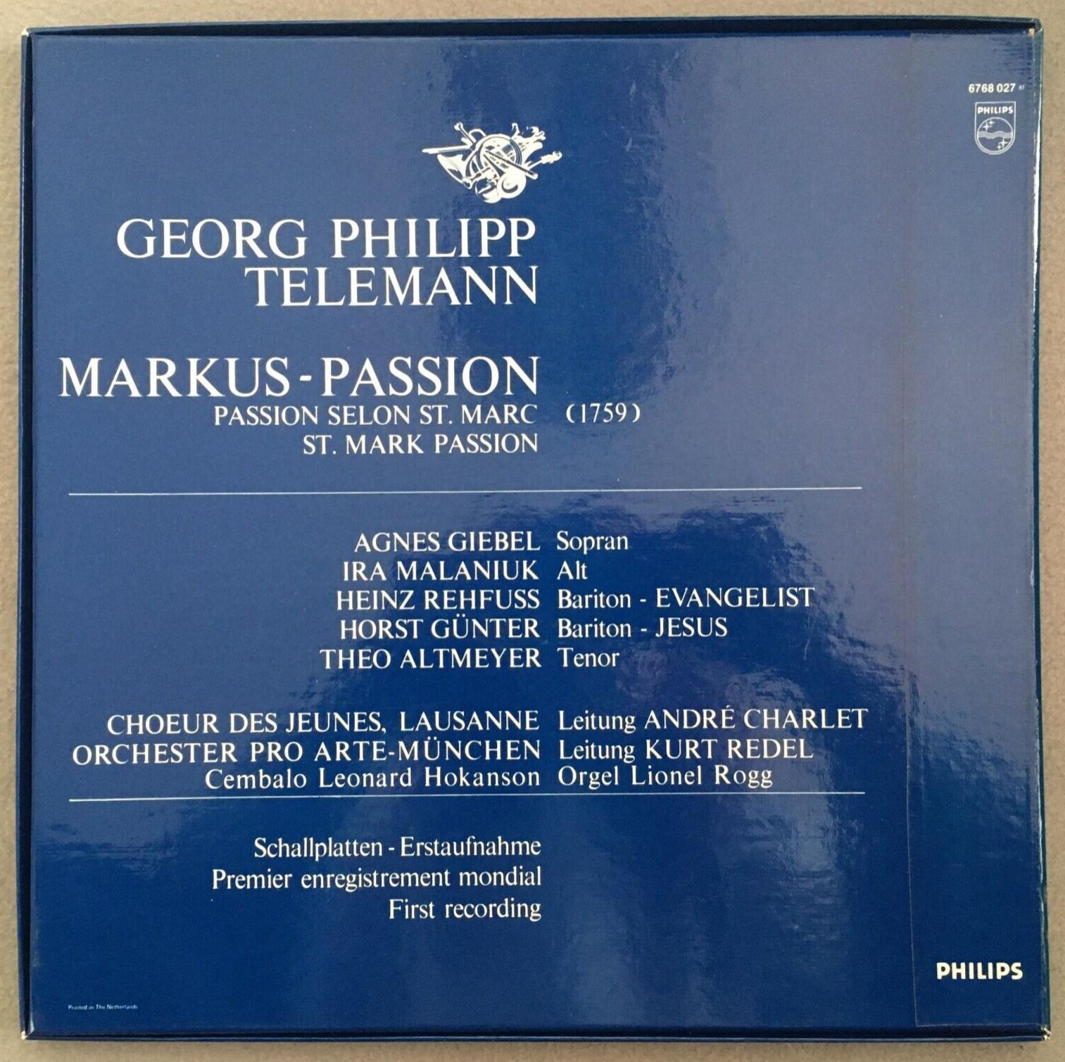 G668 Telemann Markus Passion Giebel Rogg Redel 2LP Philips 6768 027 Stereo