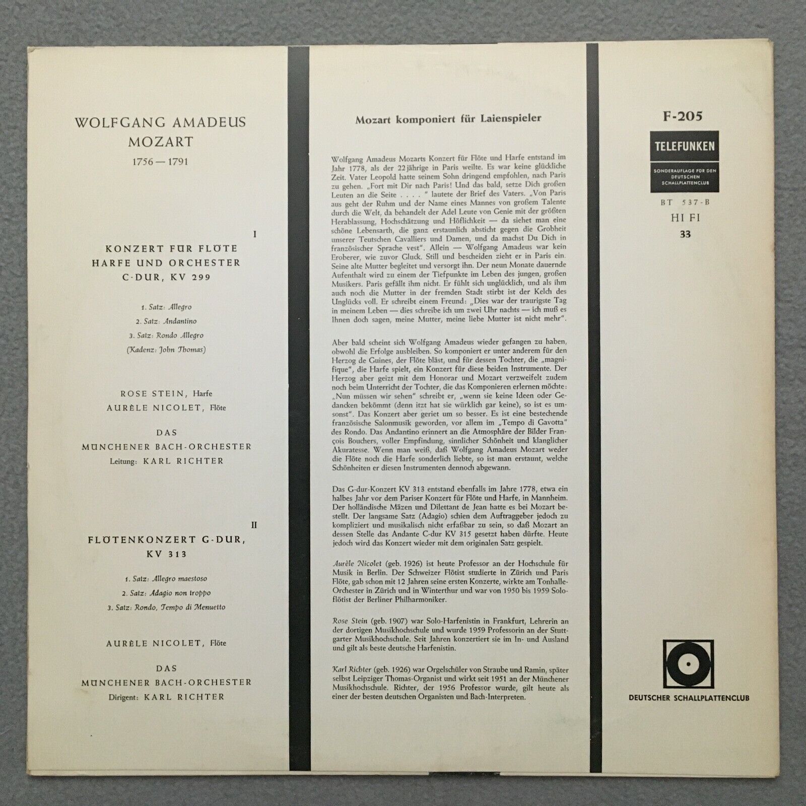 S258 Mozart Flute & Harp Concertos Nicolet Stein Richter Telefunken F-205
