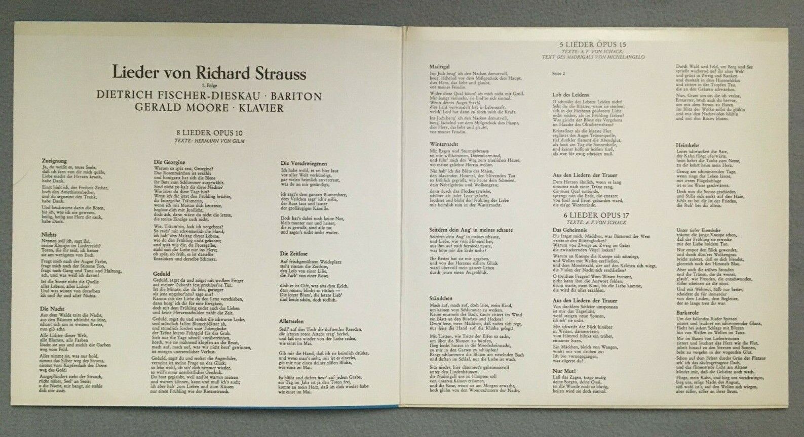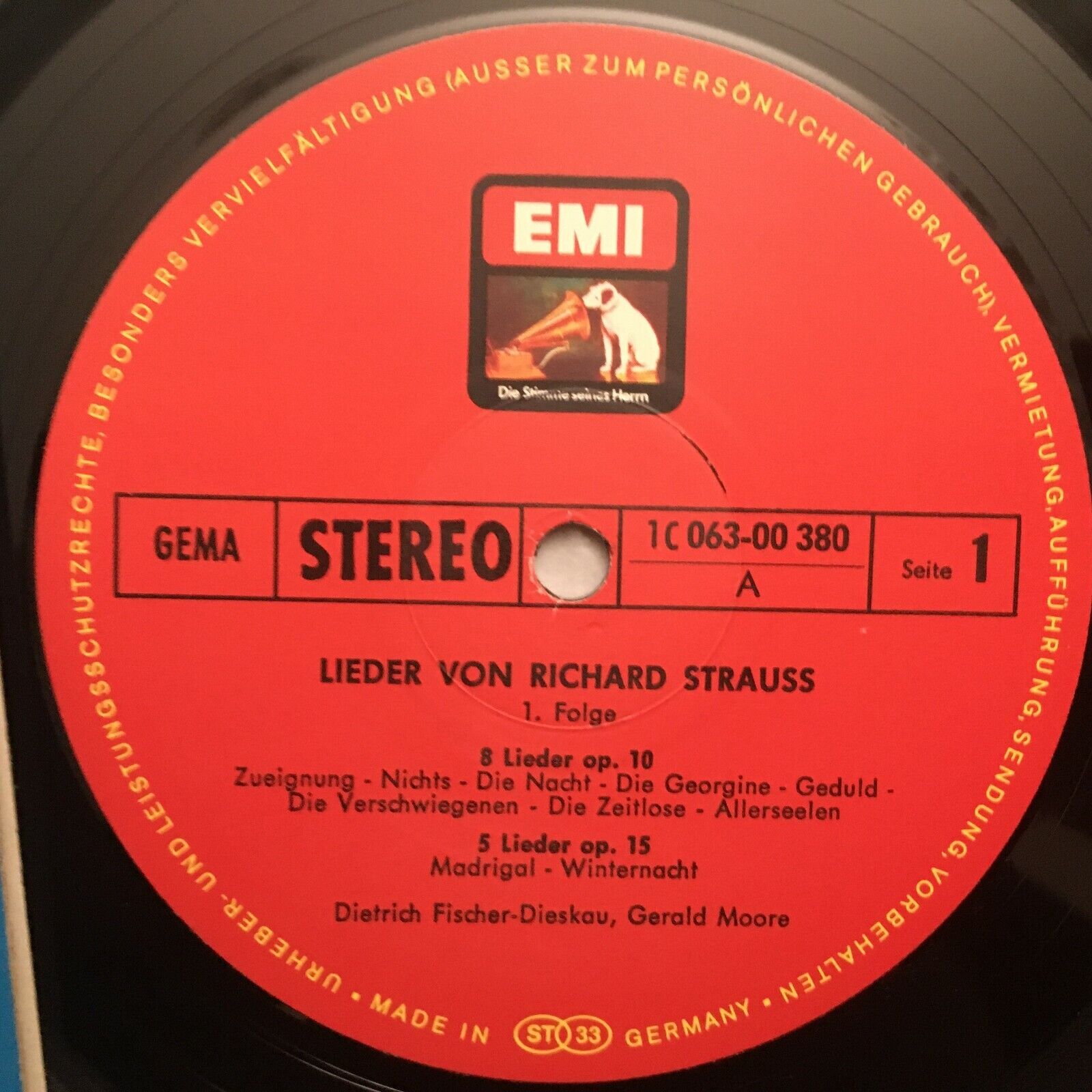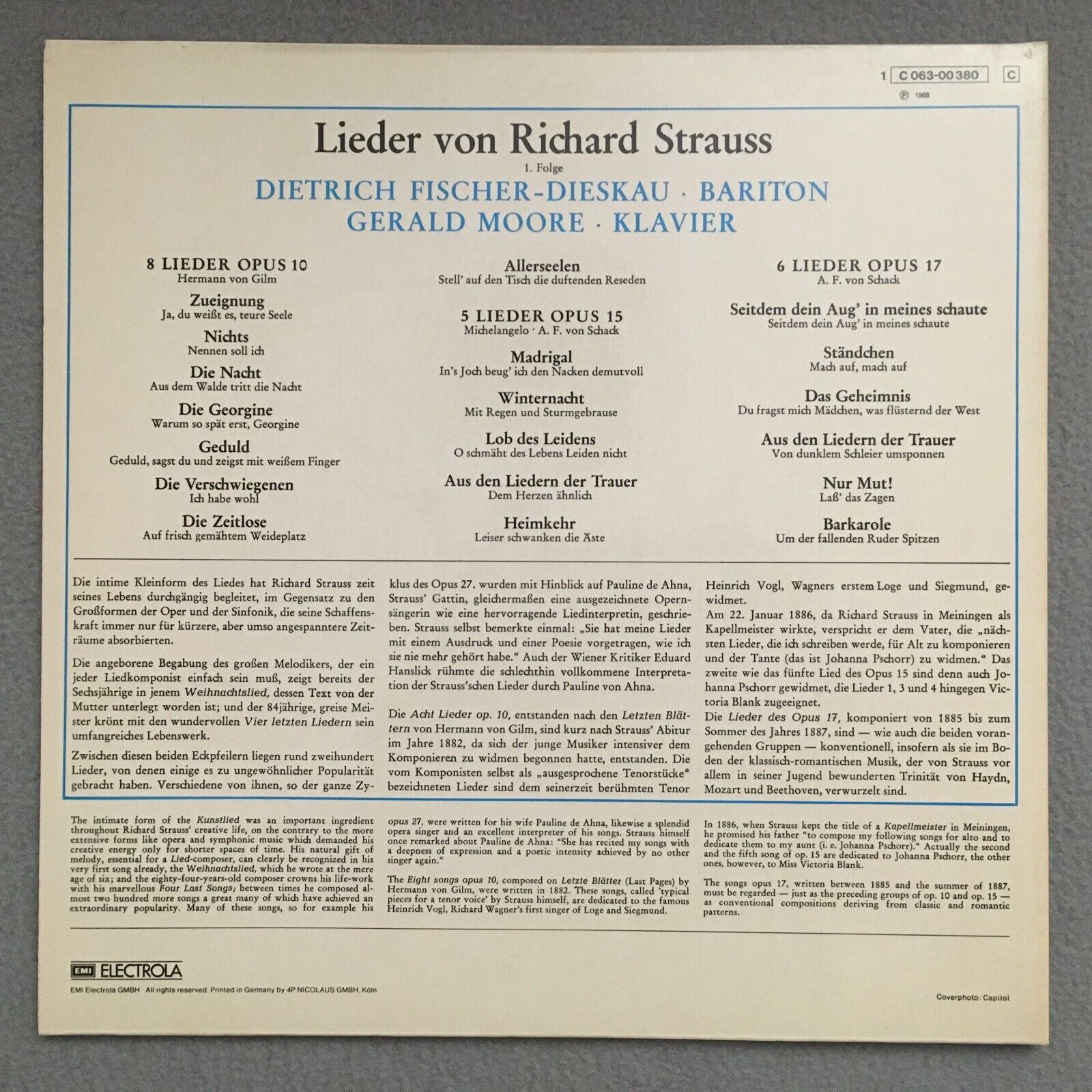 S850 R. Strauss Songs Fischer-Dieskau Moore Piano EMI 1 C 063-00 380 Stereo