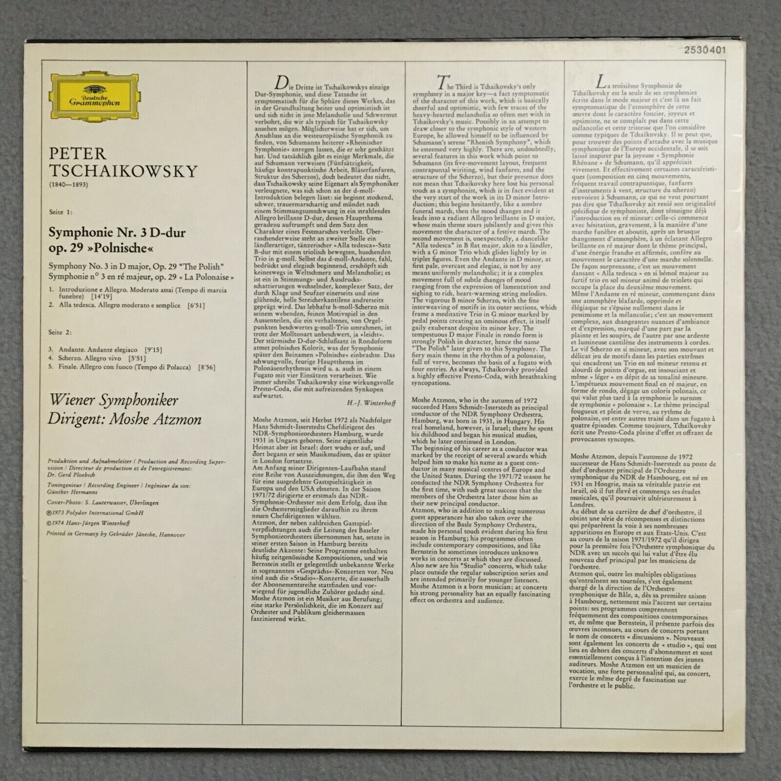 S108 Tchaikovsky Symphony No.3 Atzmon VSO DGG 2530 401 Stereo