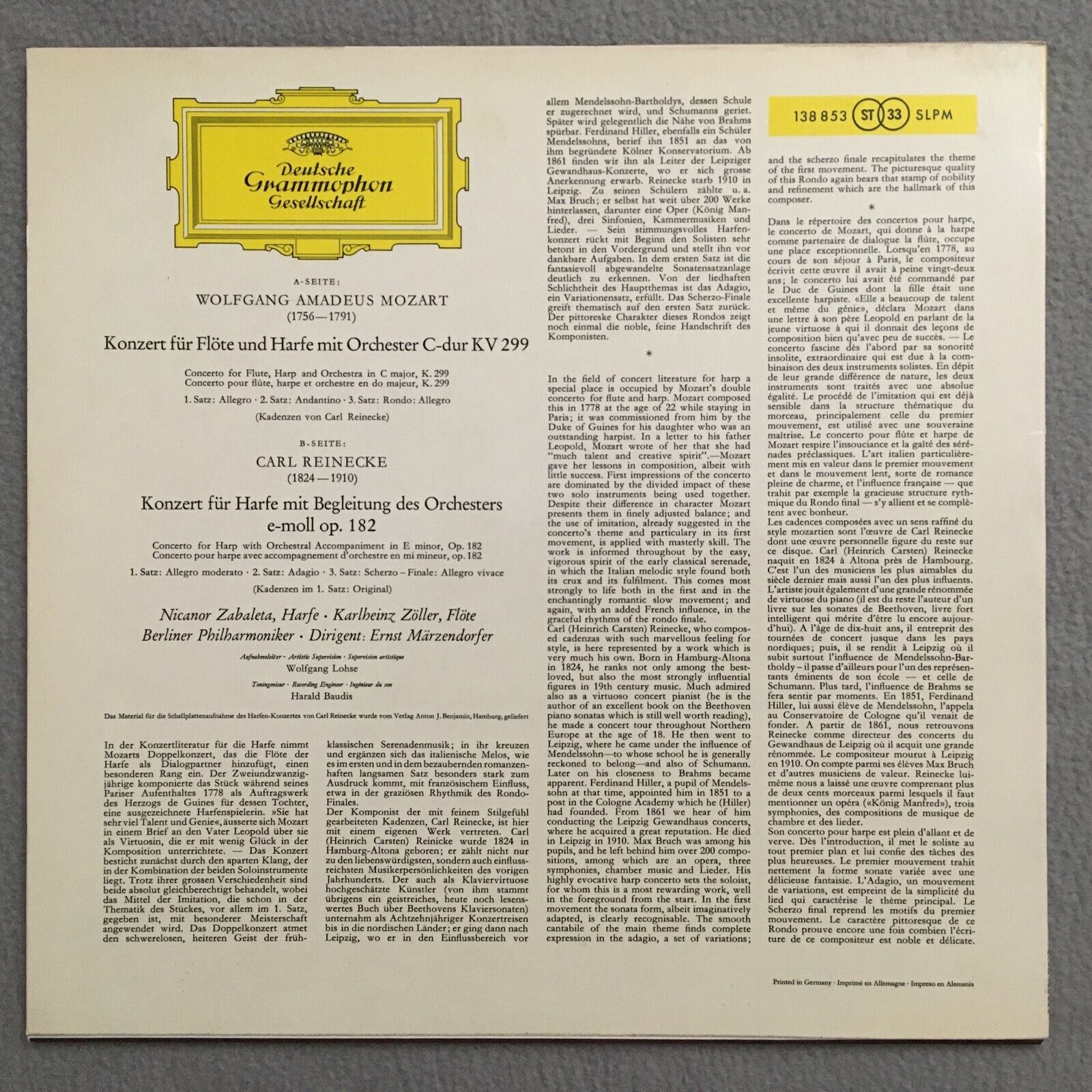 S265 Mozart Concerto Zöller Flute Zabaleta Märzendorfer DGG 138 853 SLPM Stereo