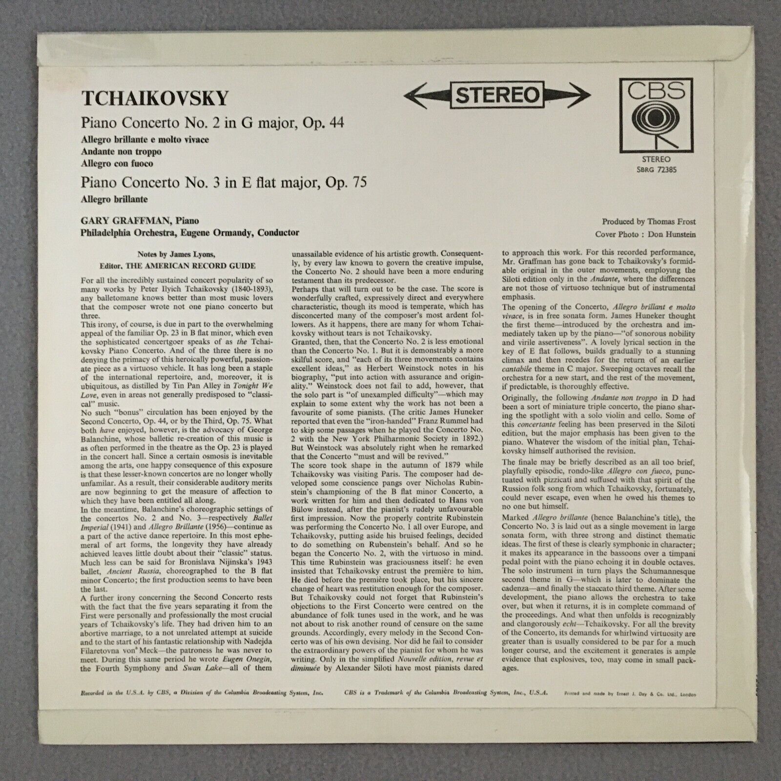 R912 Tchaikovsky Piano Concertos Graffman Ormandy CBS SBRG 72385 Stereo