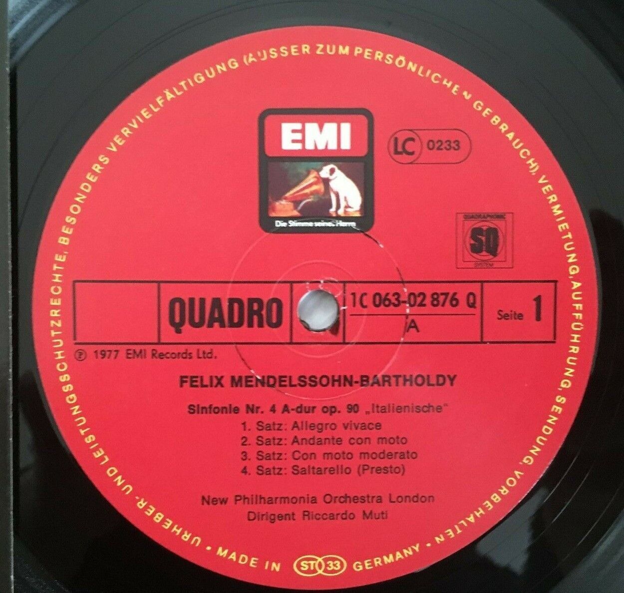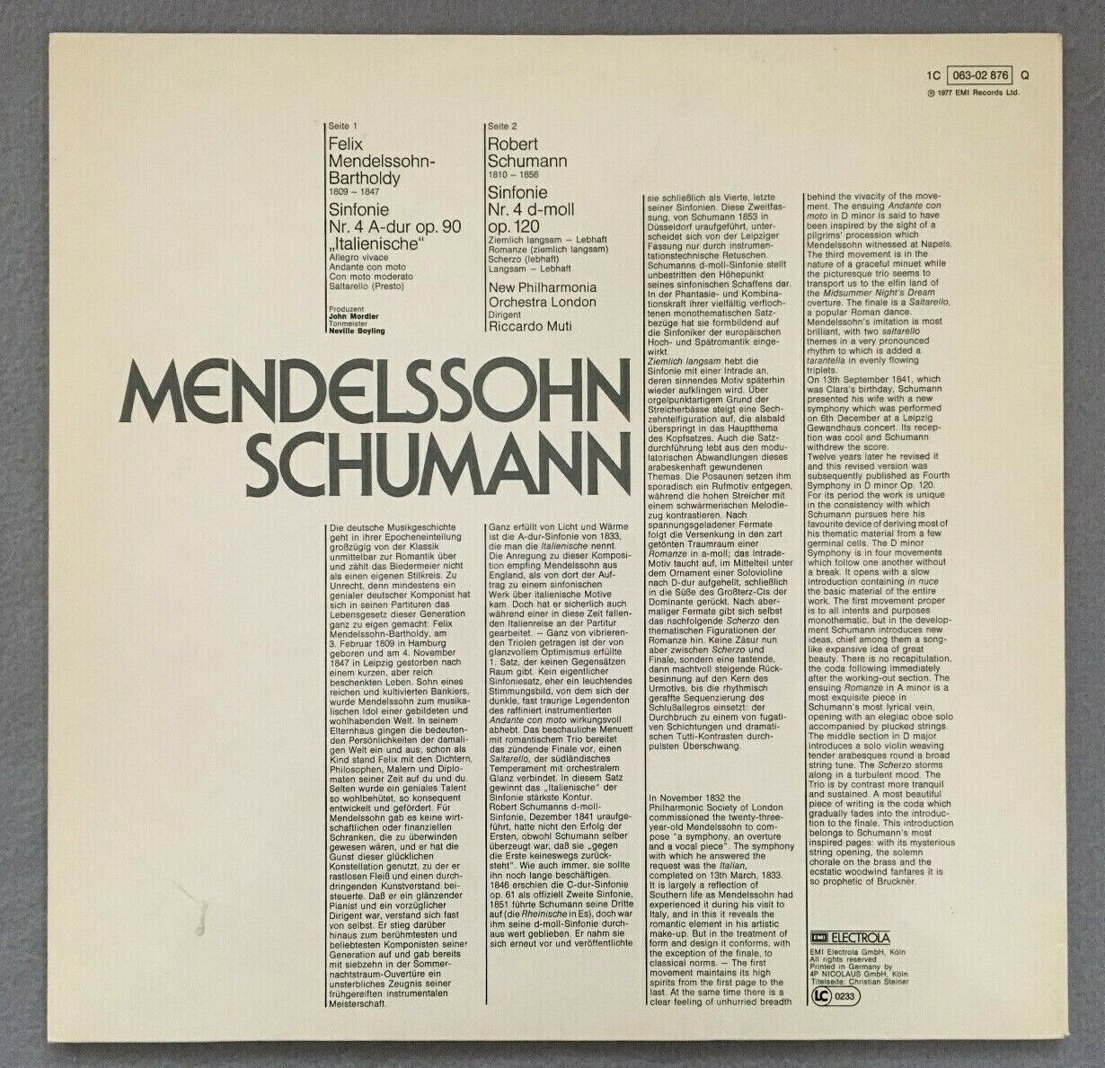 J139 Mendelssohn Schumann Symphonies No. 4 Muti EMI 1C 063-02 876 Q Quadro
