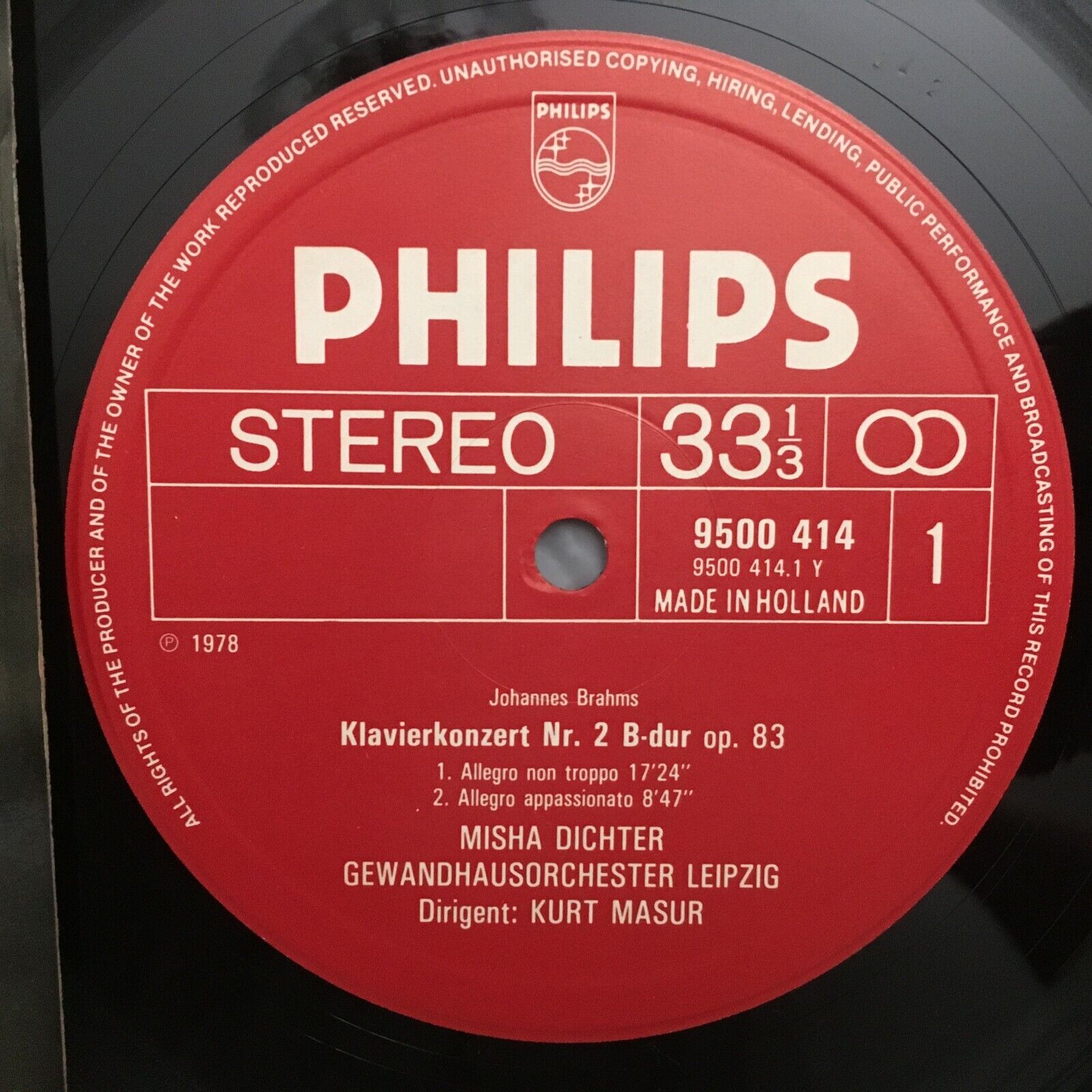 S603 Brahms Piano Concerto Dichter Masur Philips 9500 414 Stereo