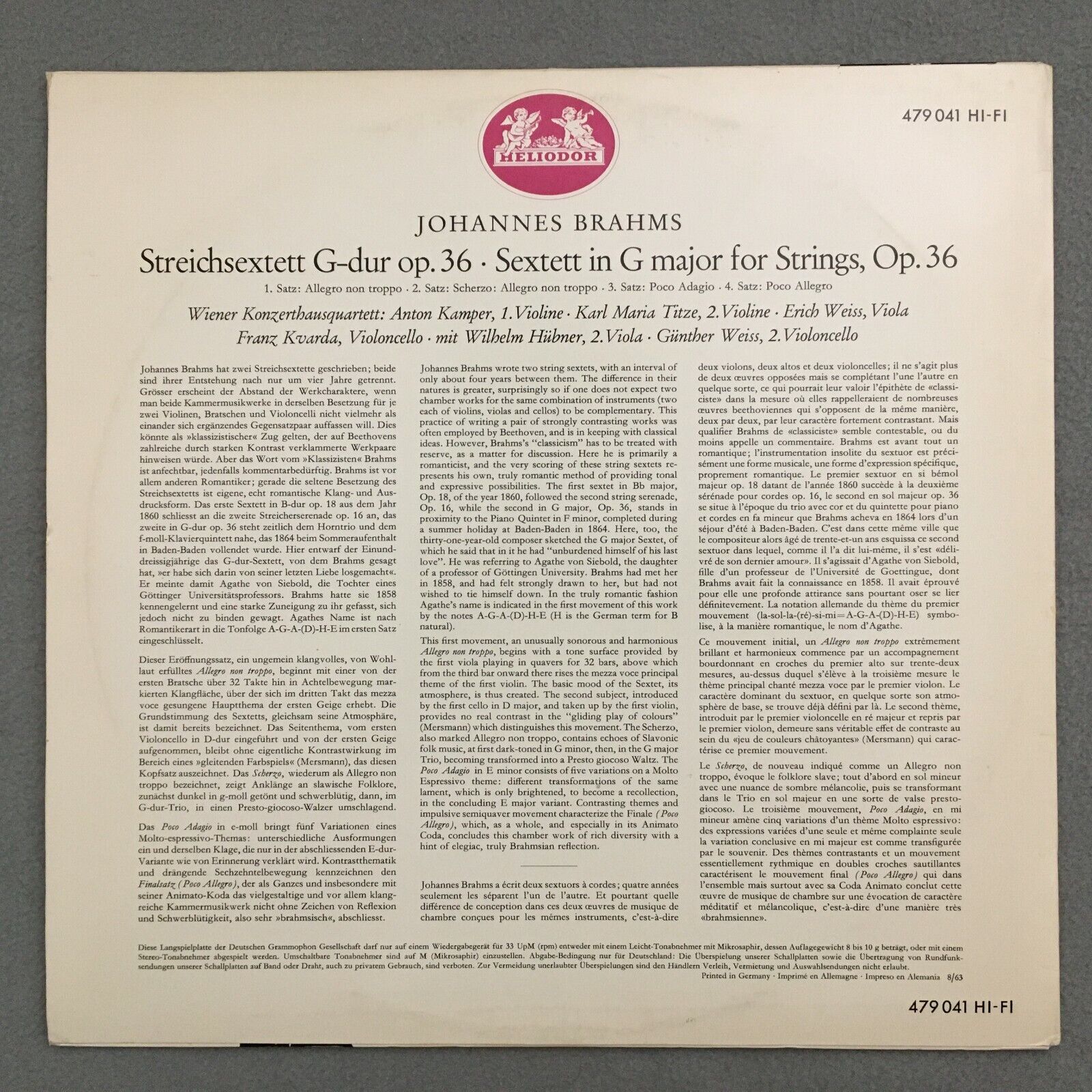 S611 Brahms String Sextet Hübner Weiss Cello Vienna Konzerthaus Heliodor 479 041