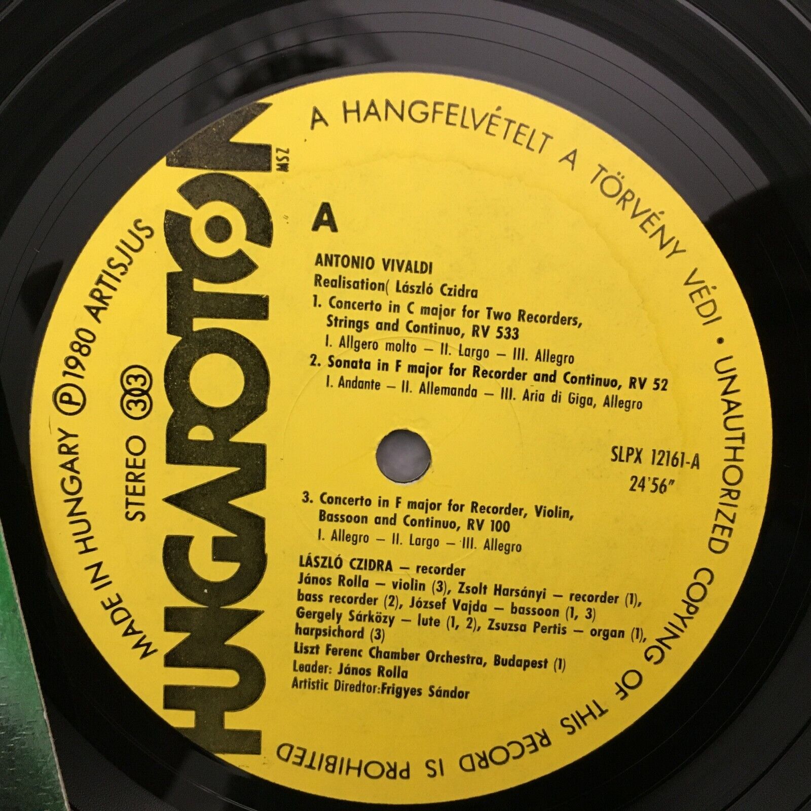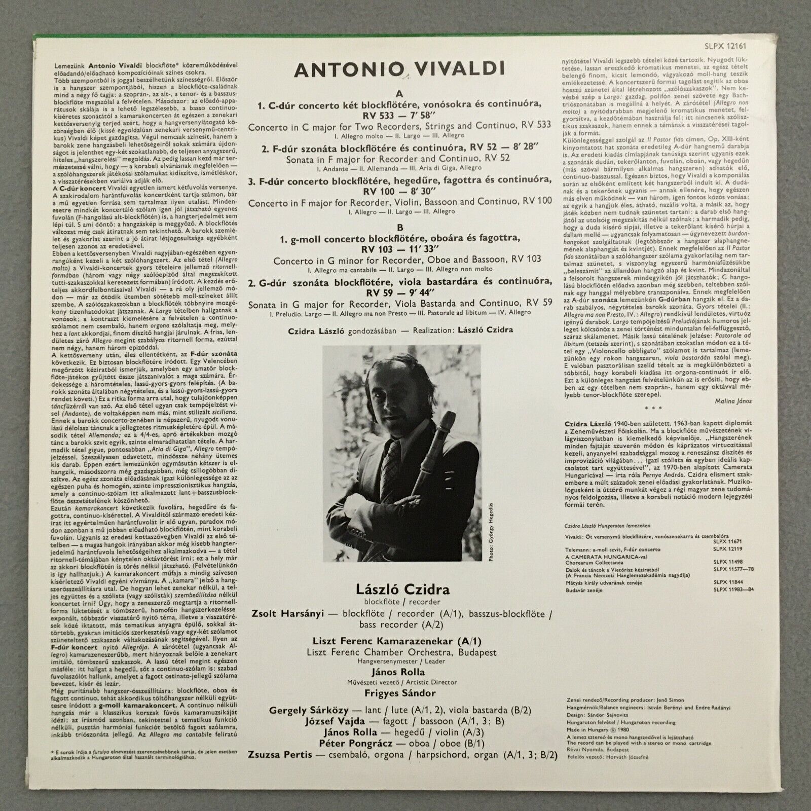 S613 Vivaldi Concertos Sonatas Czidra Recorder Rolla Hungaroton SLPX 12161 St