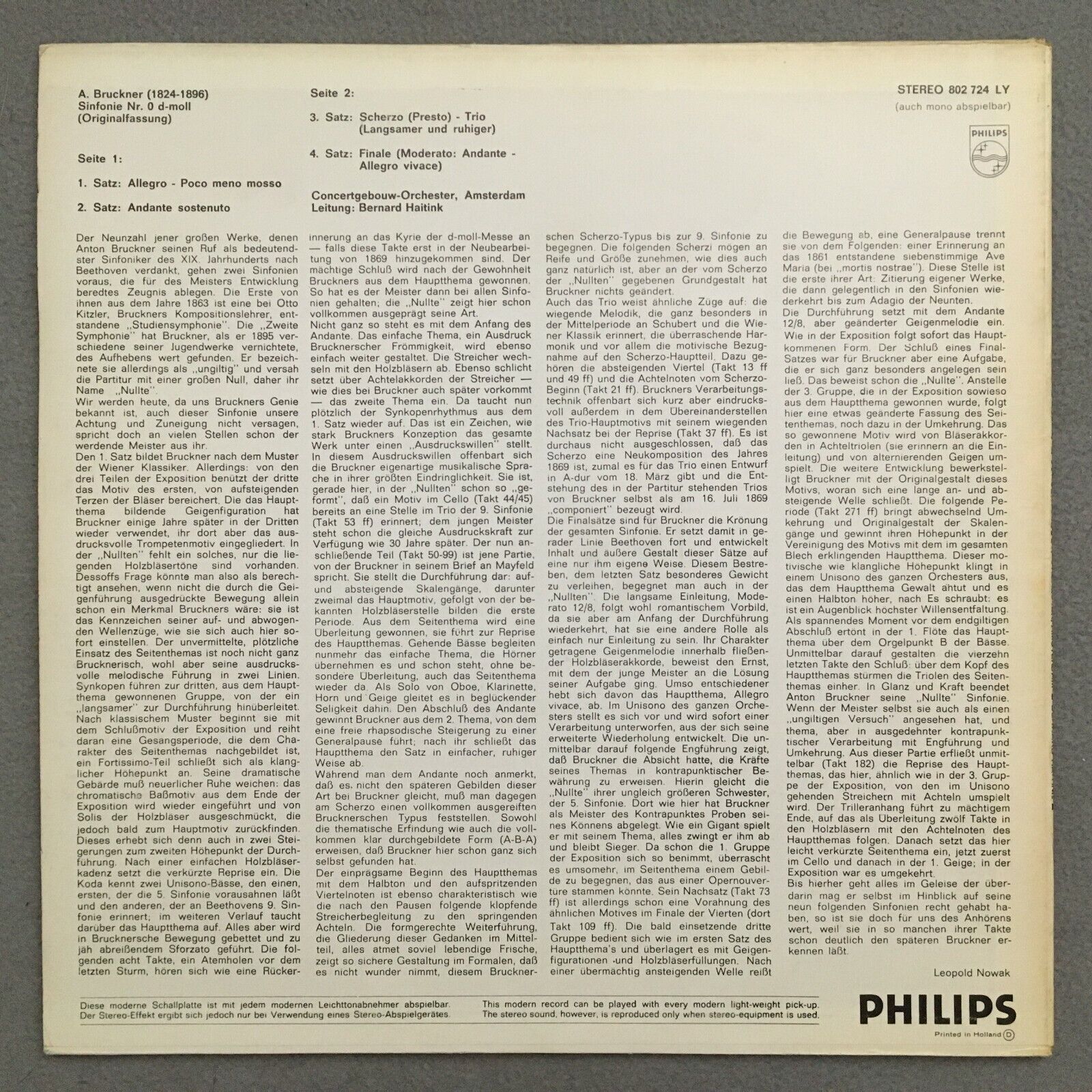 S619 Bruckner Symphony No.0 Haitink Philips 802.724 LY Stereo