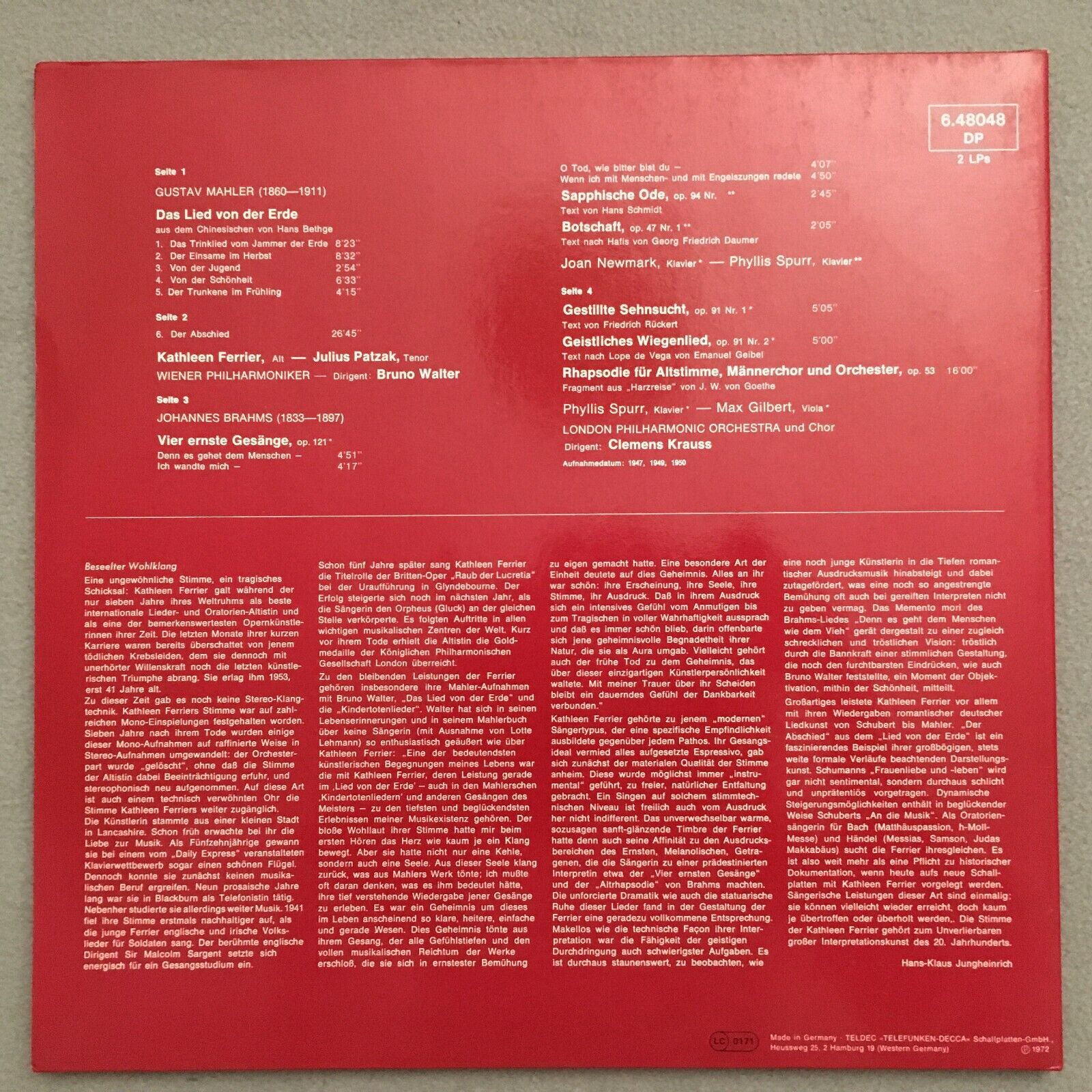 S620 Mahler Lied der Erde Ferrier Patzak Walter VPO 2LP DECCA 6.48048 DP