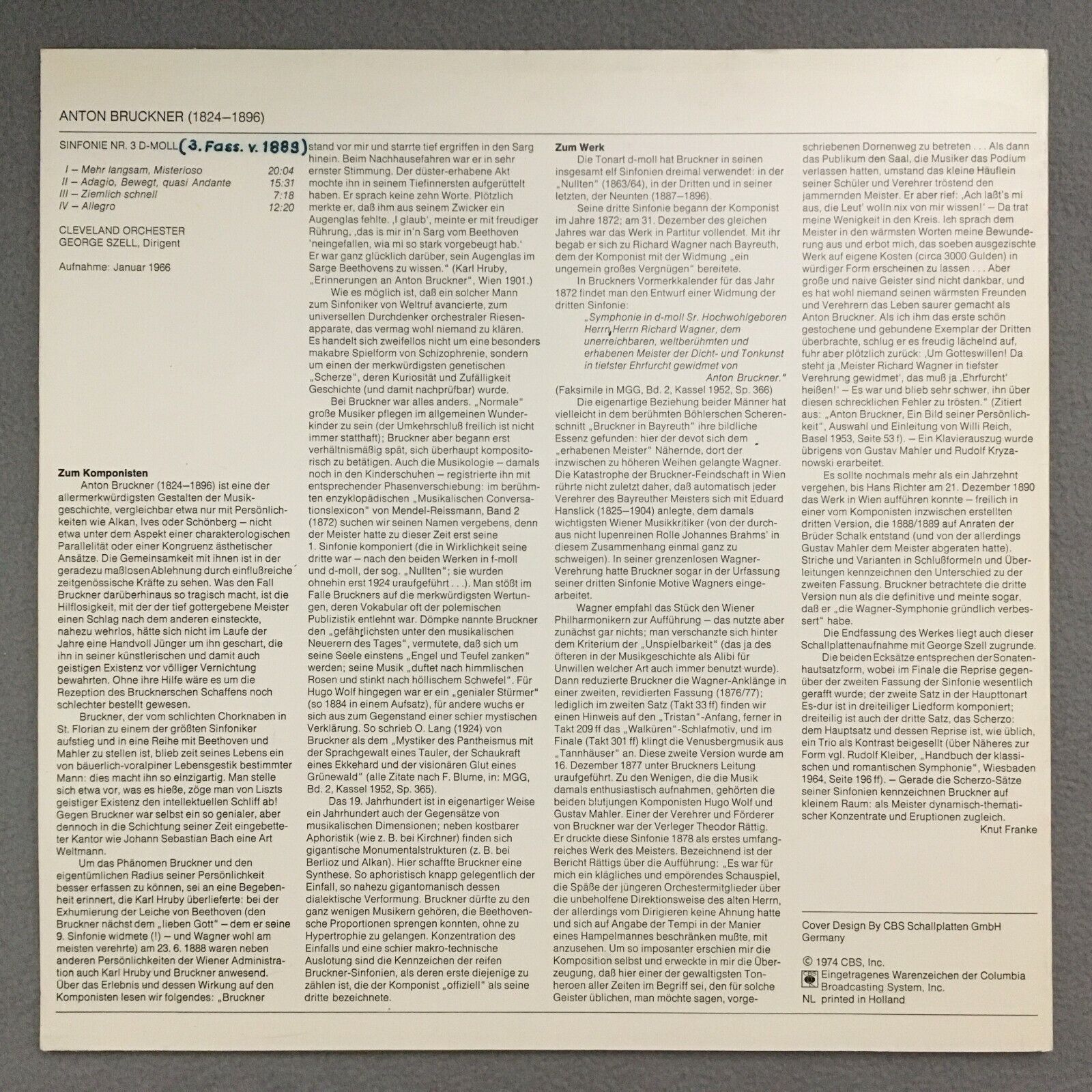 R955 Bruckner Symphony No.3 Szell CBS 61 072 Stereo