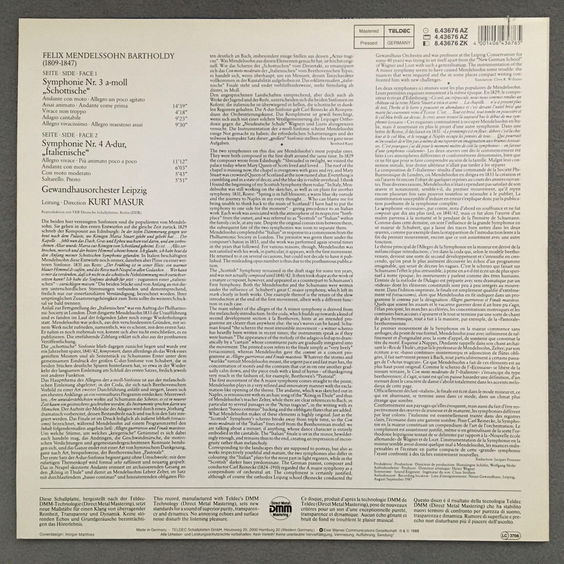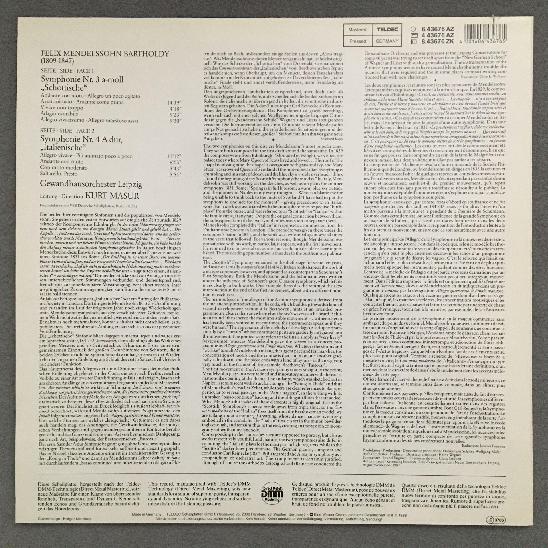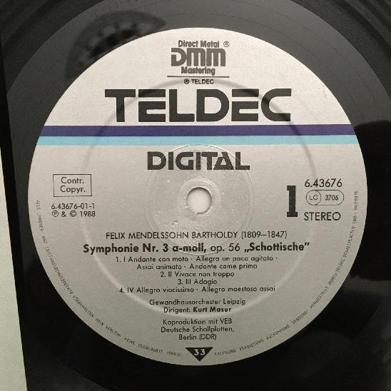 O713 Mendelssohn Symphonies No.3 & No.4 Masur Teldec 6.43676 AZ Digital Stereo