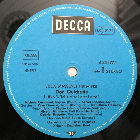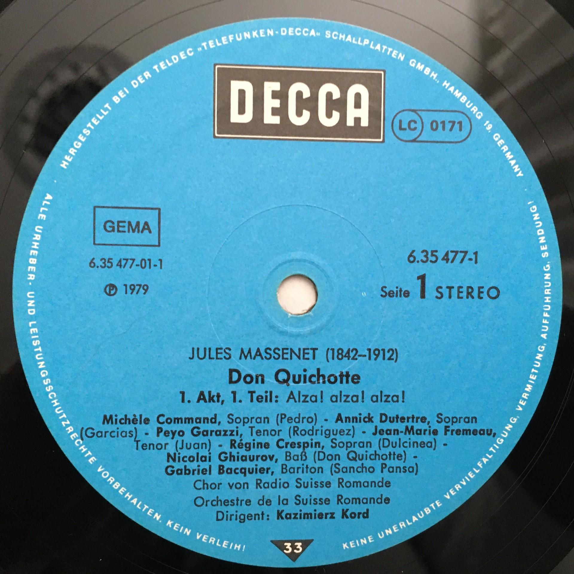 D809 Massenet Don Quichotte Ghiaurov Crespin Kord 3LP DECCA 6.35477 GF Stereo