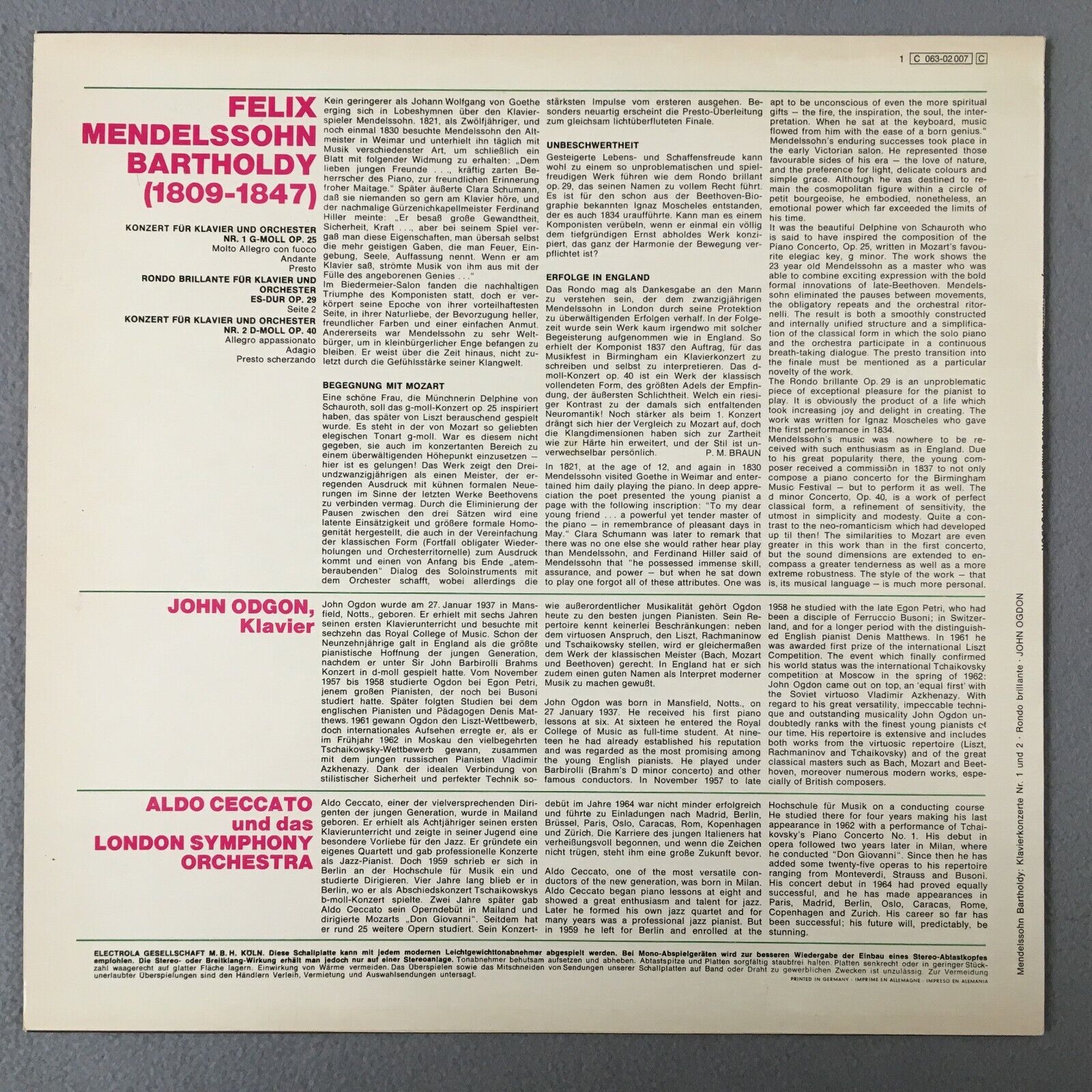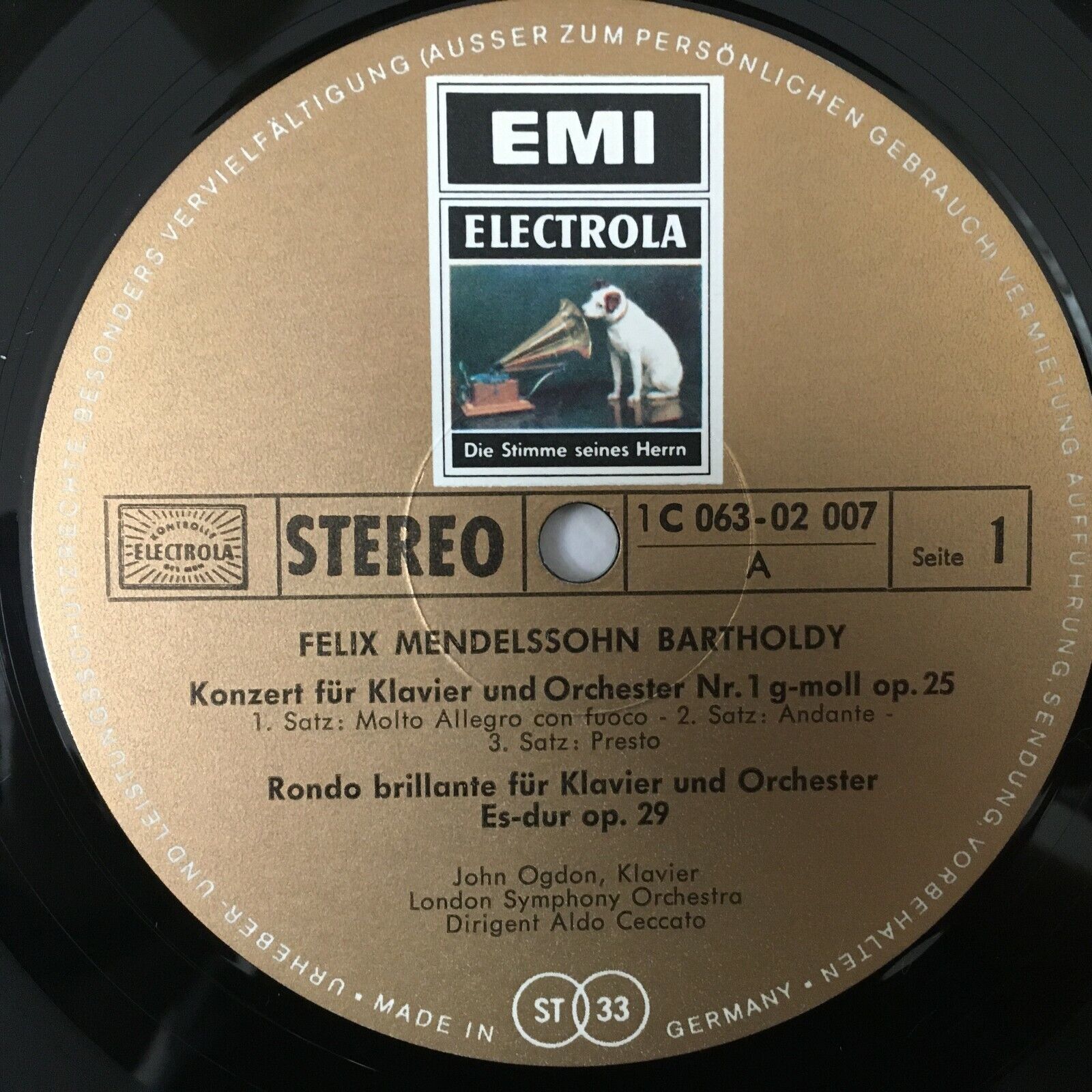 R962 Mendelssohn Piano Concertos Ogdon Ceccato LSO EMI 1 C 063-02 007 Stereo