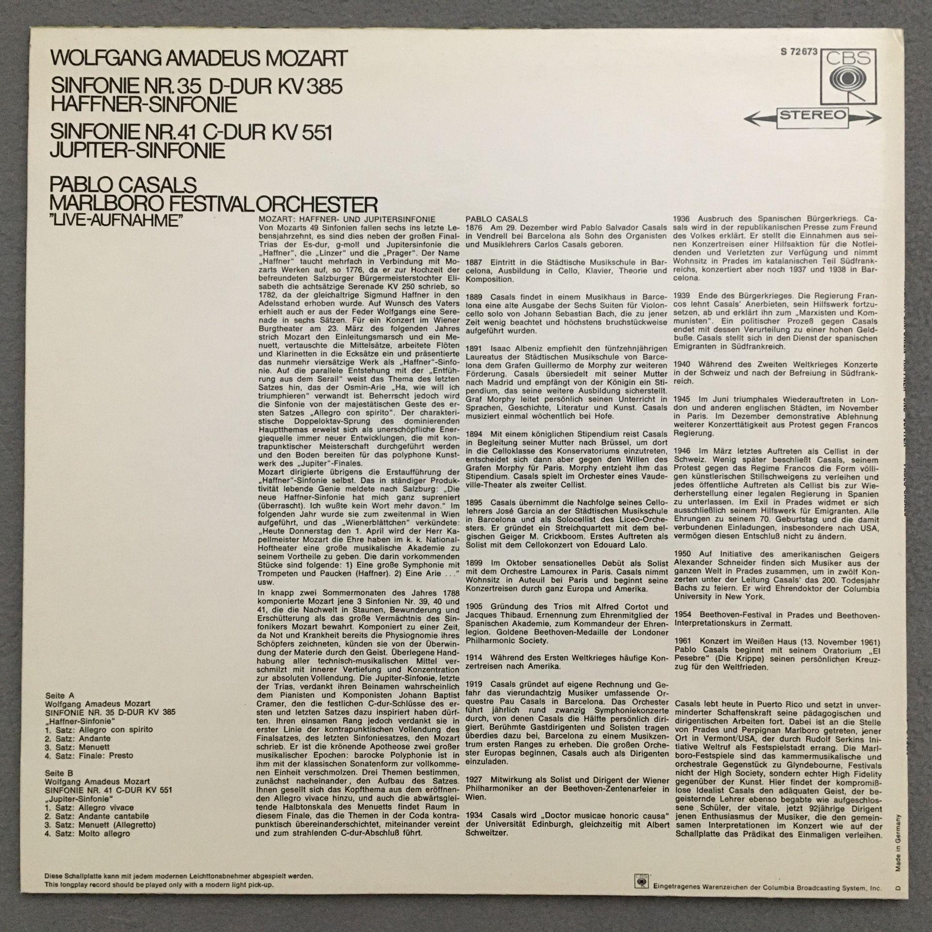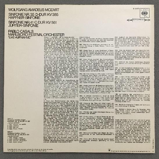 O727 Mozart Symphonies No.35 & No.41 Casals CBS S 72 673 Stereo