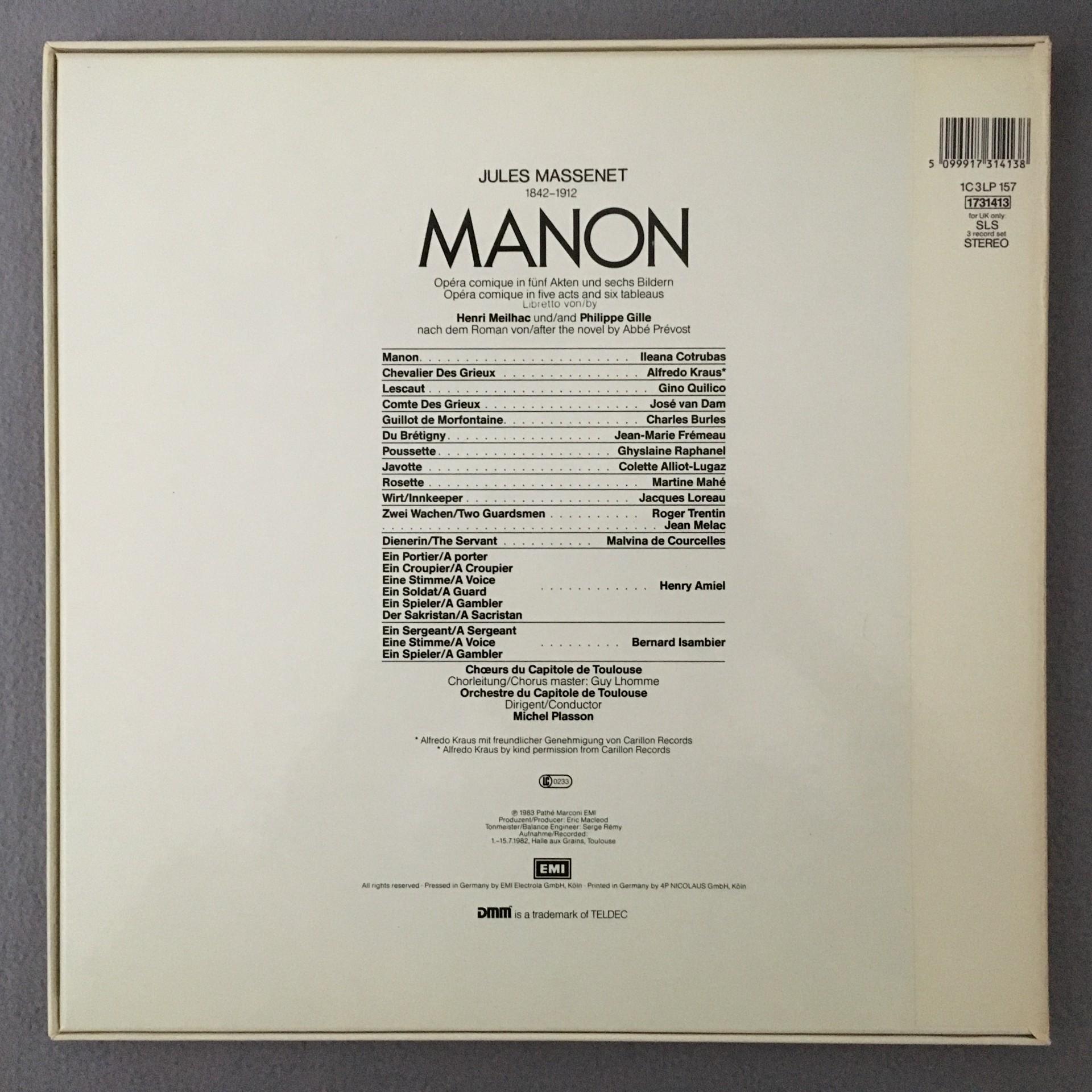 G686 Massenet Manon Cotrubas Kraus Plasson 3LP EMI 1C 157 1731413 Digital Stereo