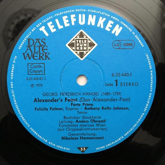 D821 Handel Alexander´s Feast Palmer Harnoncourt 2LP Telefunken 6.35440 EK St