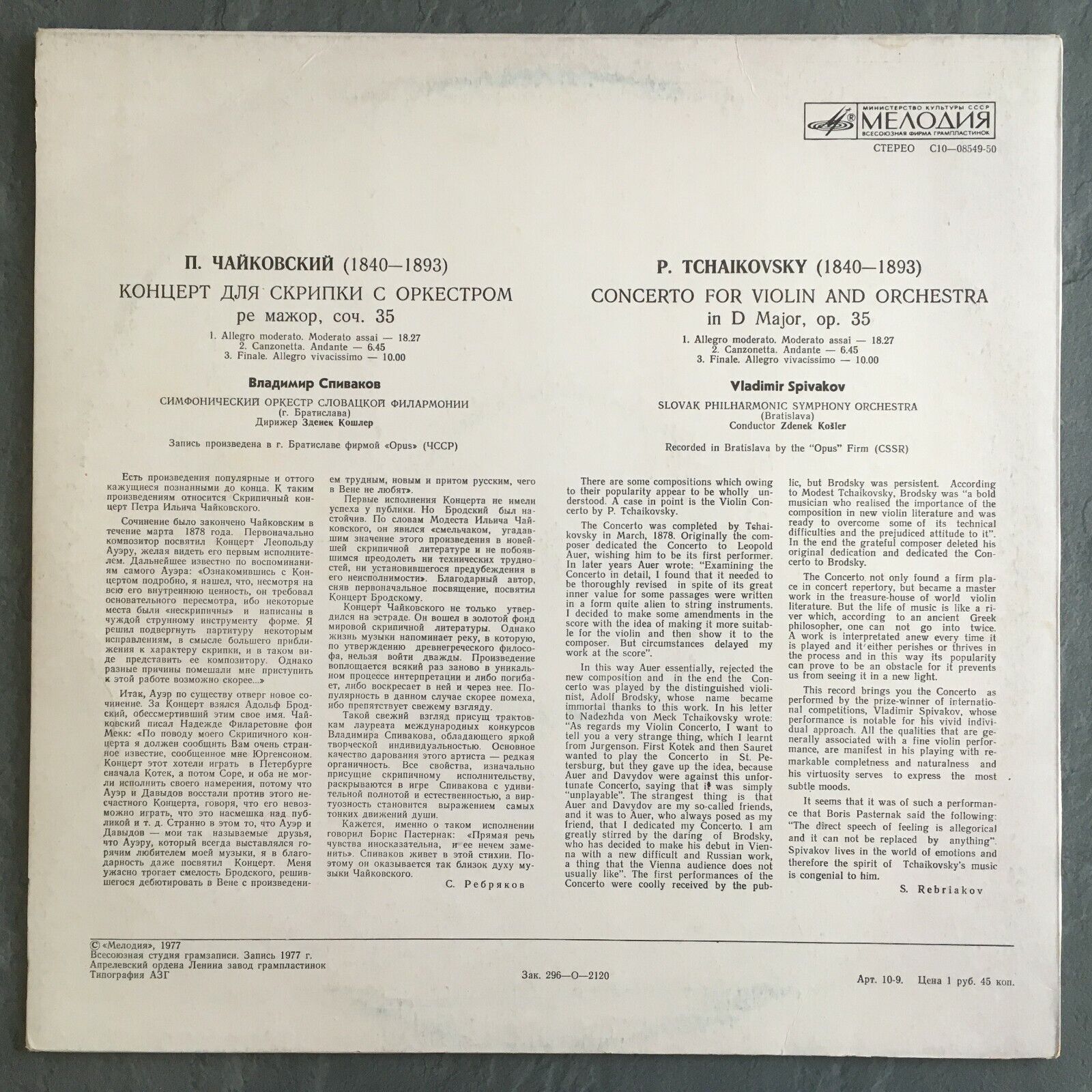 V519 Tchaikovsky Violin Concerto Spivakov Kosler Melodiya C10 -08549-50 Stereo