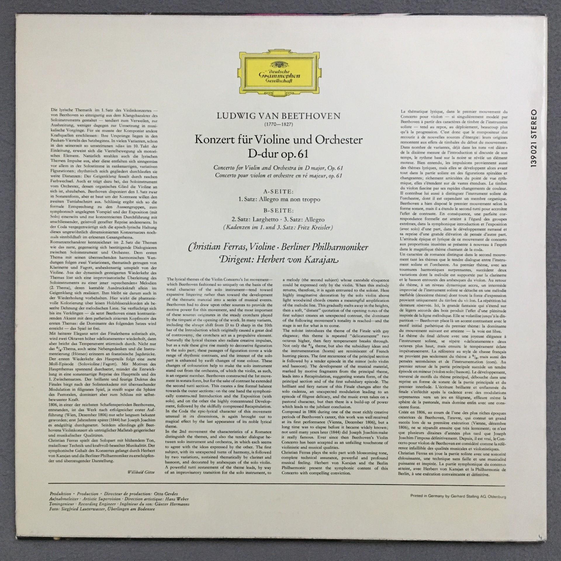 O753 Beethoven Violin Concerto D major Op.61 Ferras Karajan DGG 139 021 Stereo