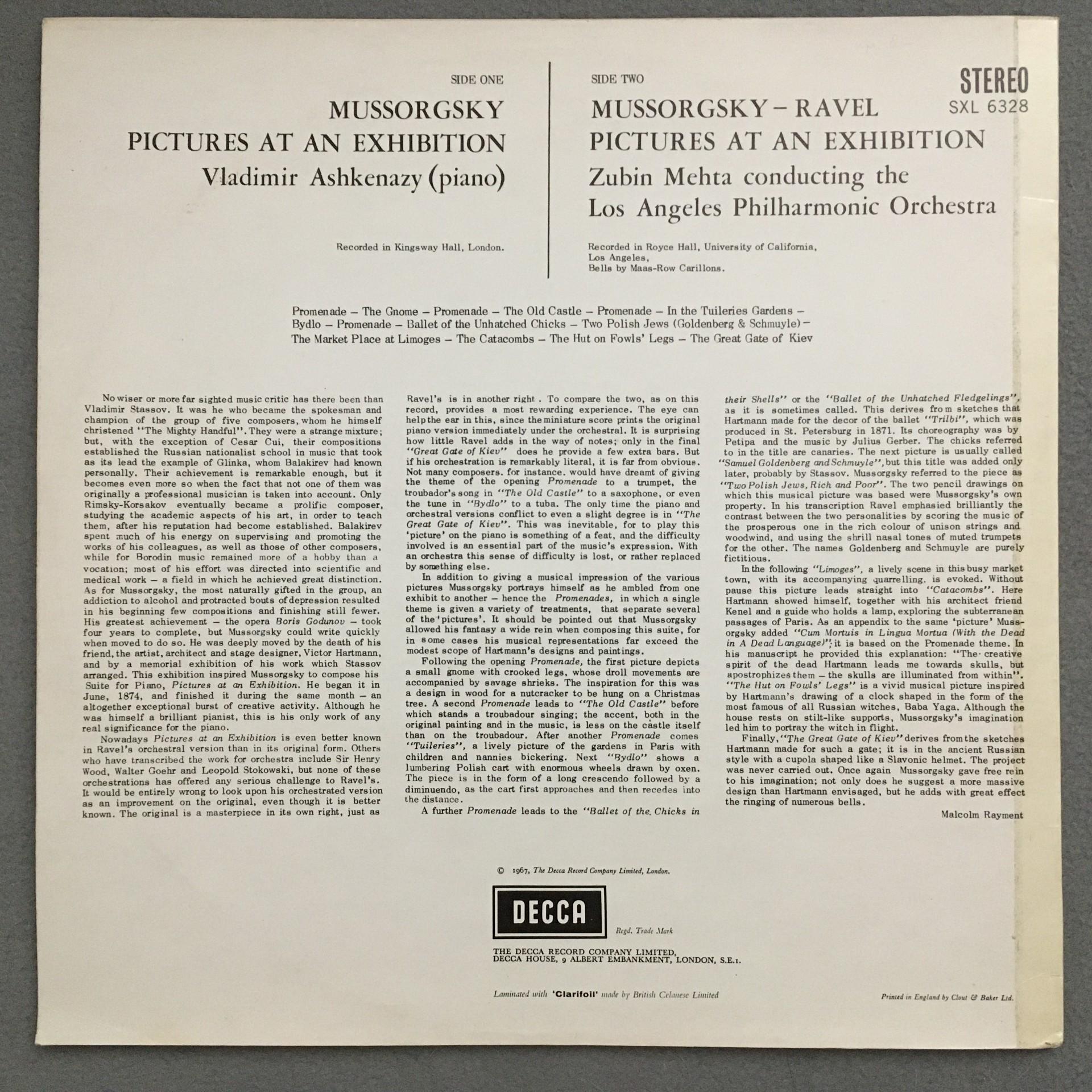 O786 Mussorgsky Pictures at an Exhibition Ashkenazy Mehta DECCA SXL 6328 Stereo
