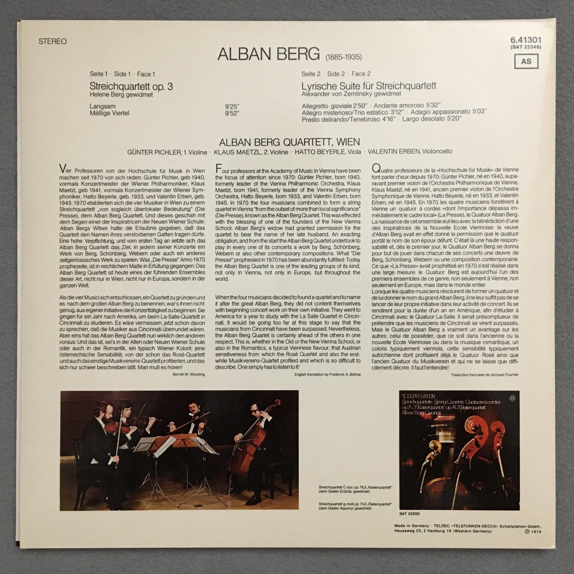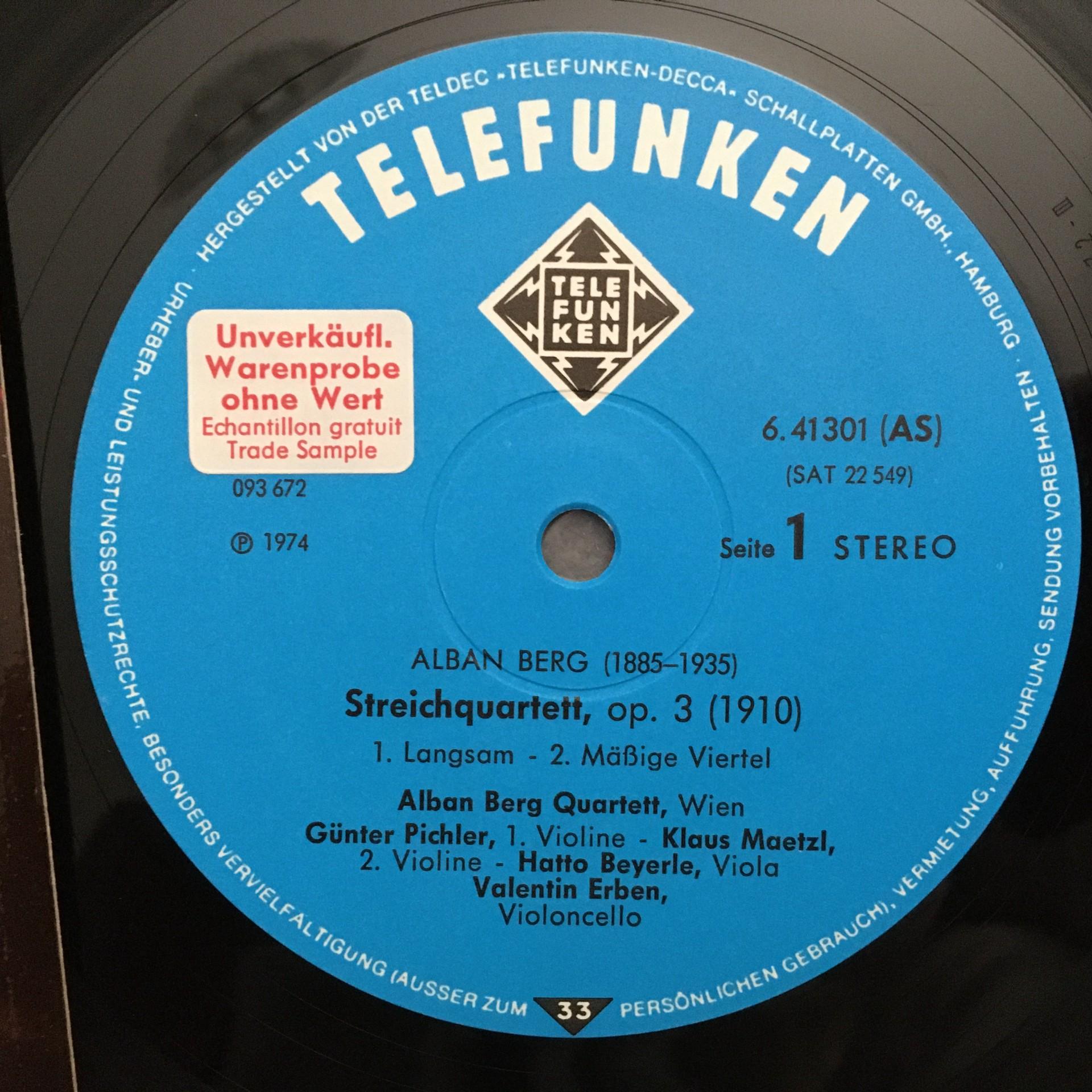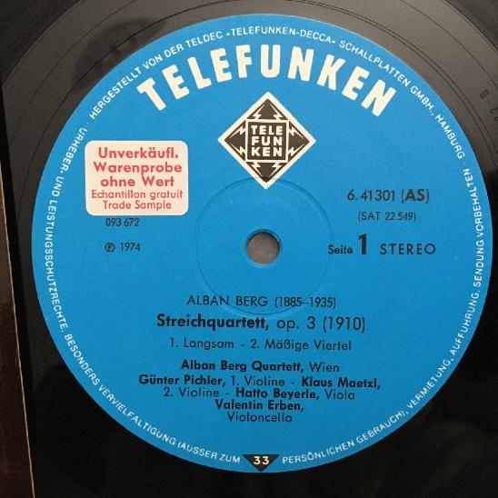 O793 Berg String Quartets Alban Berg Quartet Telefunken 6.41301 AS Stereo PROMO