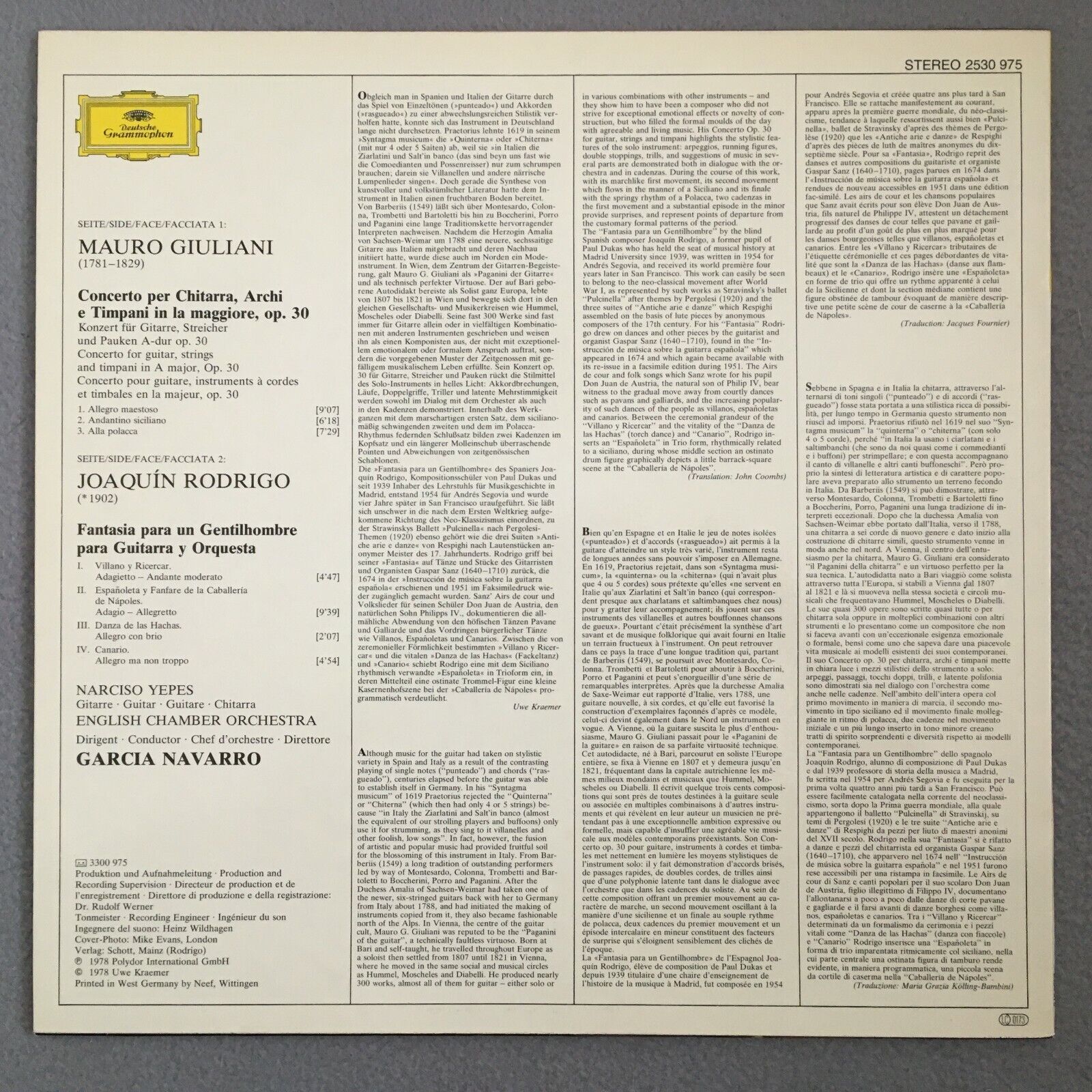 V175 Giuliani Guitar Concerto Rodrigo Fantasy Yepes Navarro DGG 2530 975 Stereo