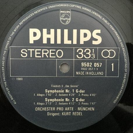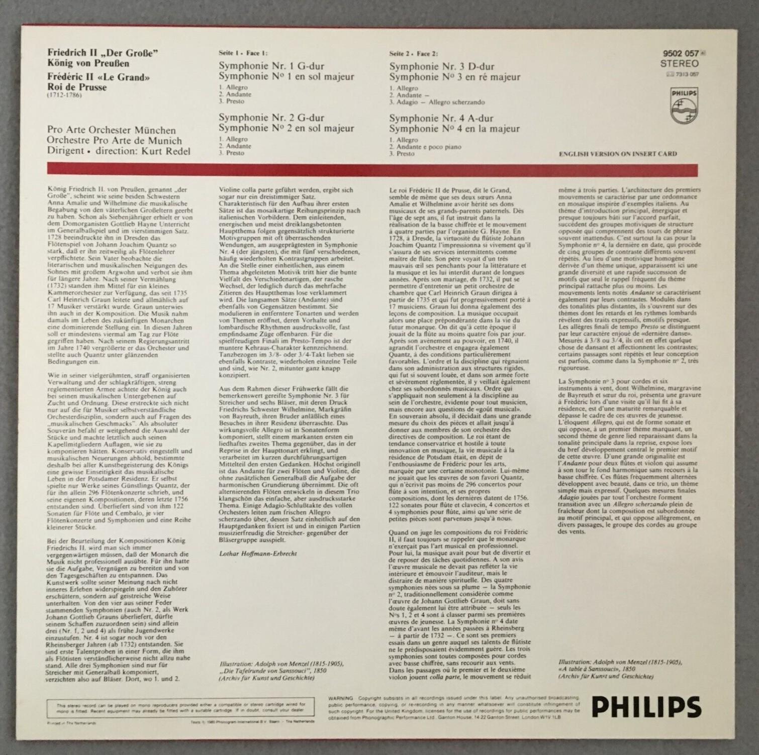 P519 Friedrich II The Great 4 Symphonies Redel Philips 9502 057 Stereo