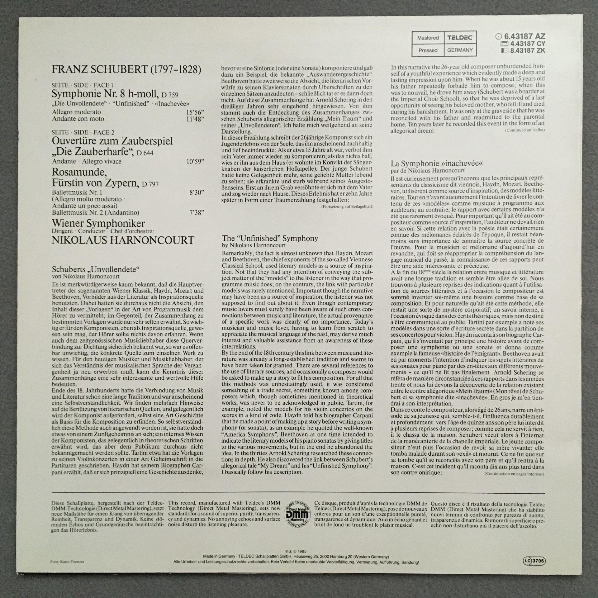 O797 Schubert Symphony No.8 Harnoncourt VSO Teldec 6.43187 AZ Digital Stereo