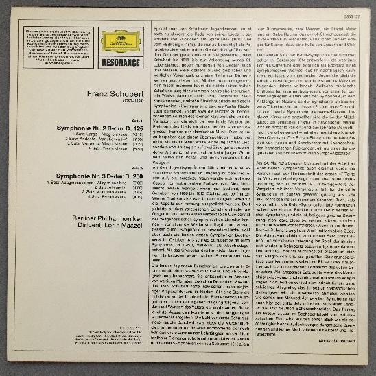 O798 Schubert Symphonies No.2 & No.3 Maazel BPO DGG 2535 127 Stereo