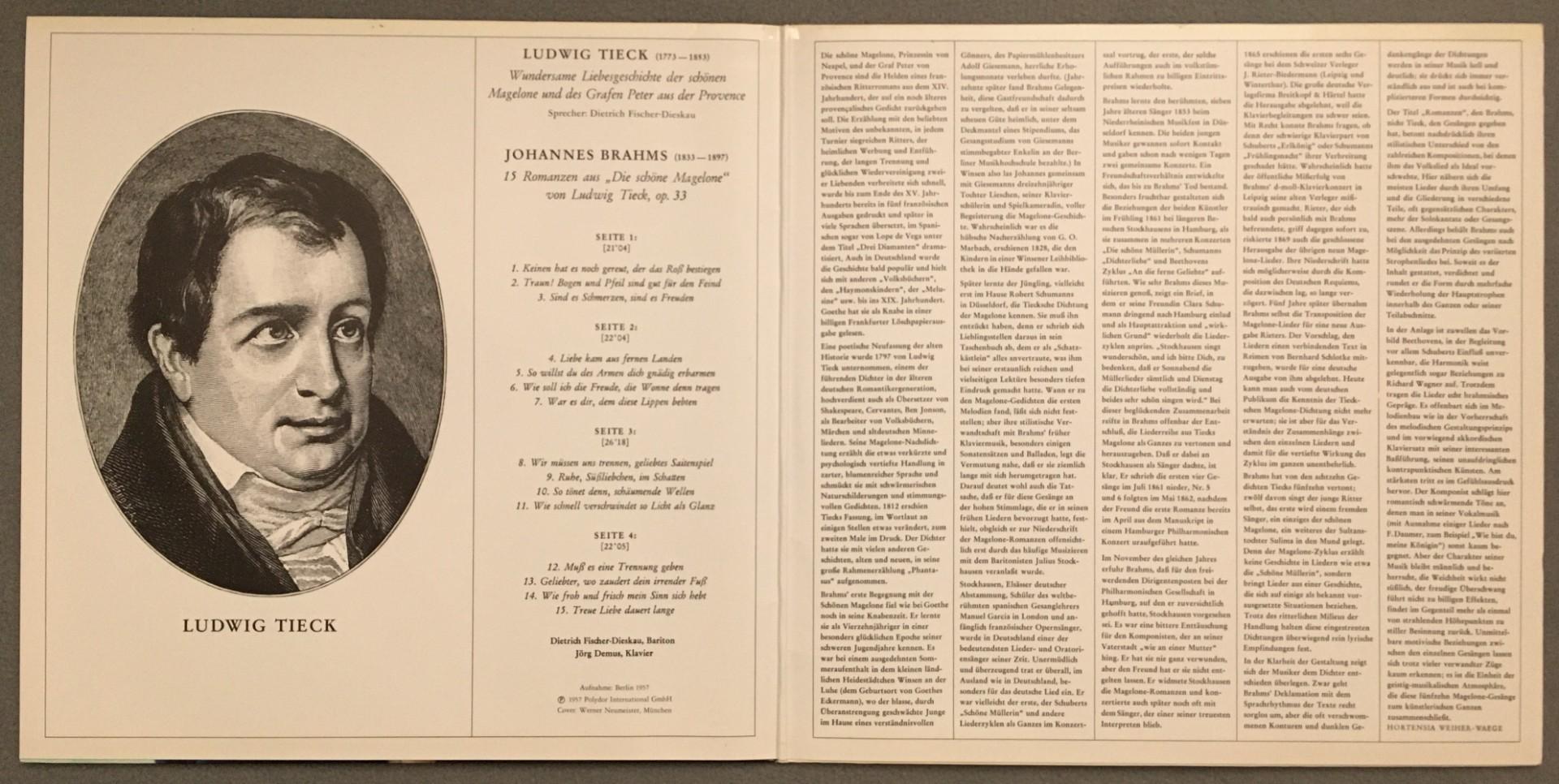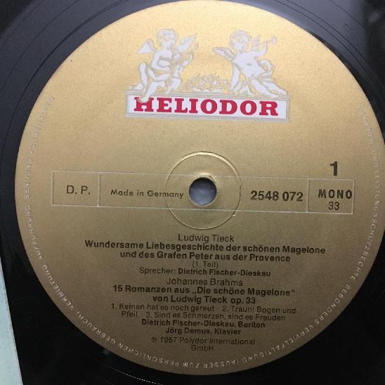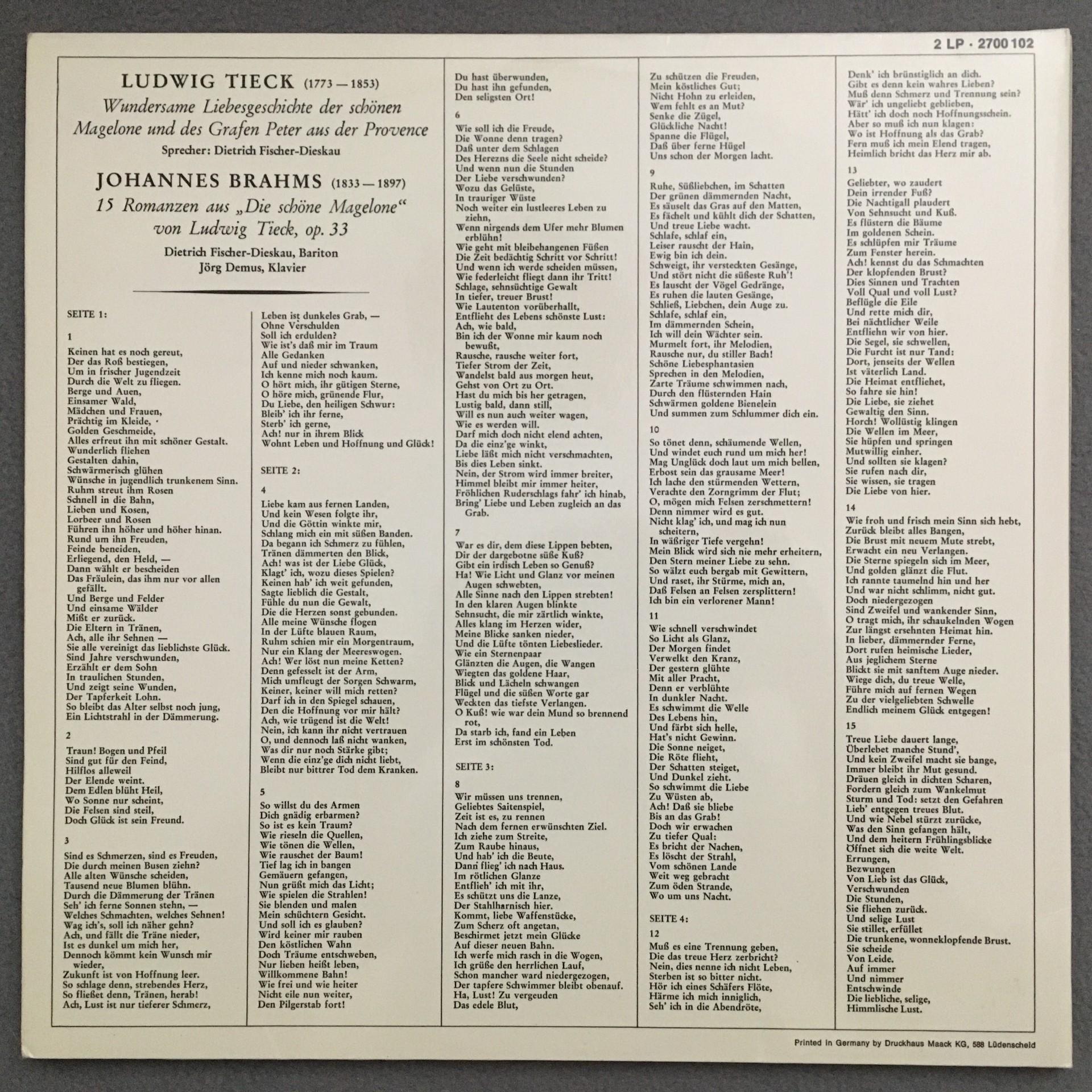 O801 Brahms Schöne Magelone Tieck Fischer-Dieskau 2LP Heliodor 2700 102
