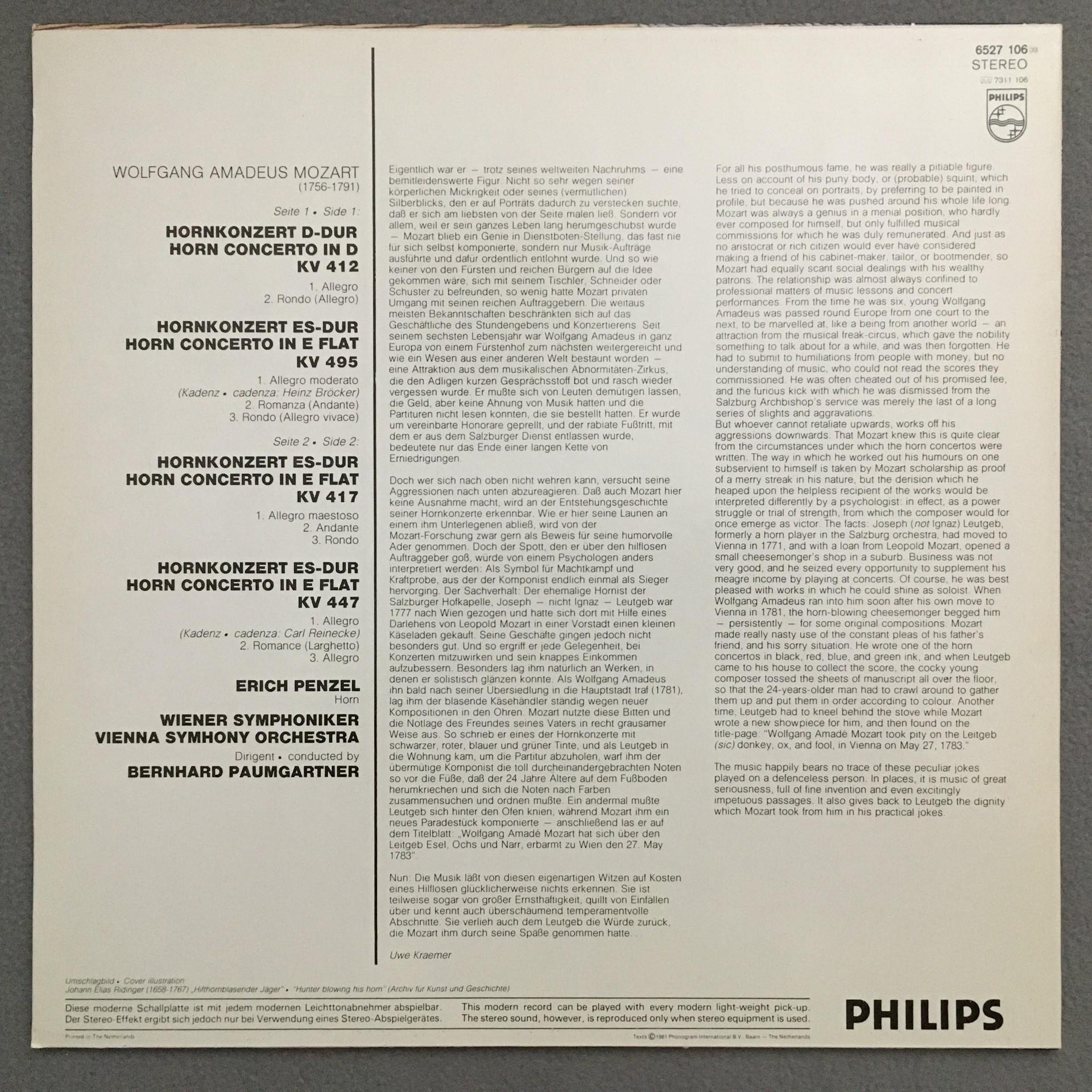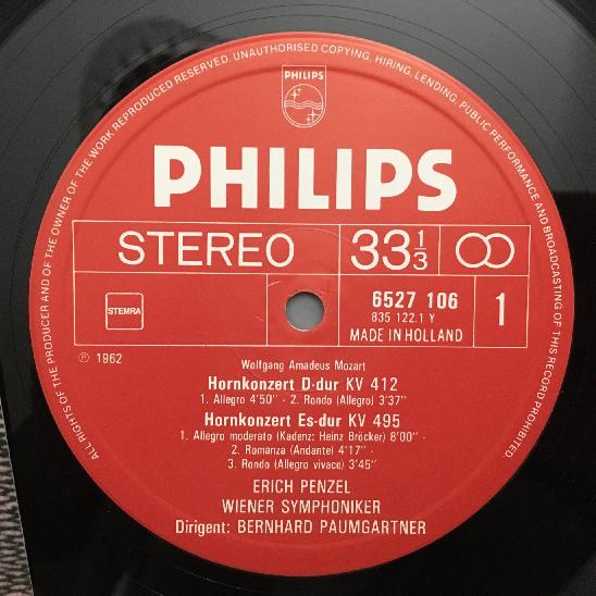 O802 Mozart The 4 Horn Concertos Penzel Paumgartner VSO Philips 6527 106 Stereo
