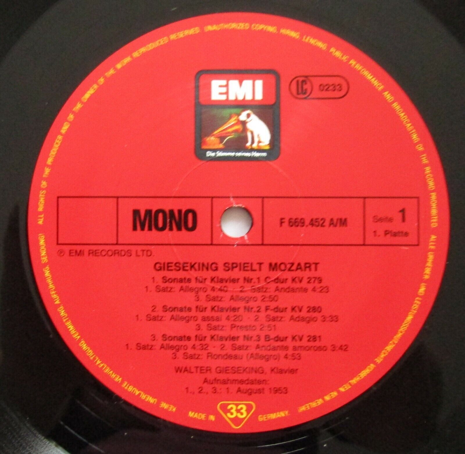 G442 Gieseking plays Mozart Piano Sonatas & Pieces 8LP EMI F 669.452-459