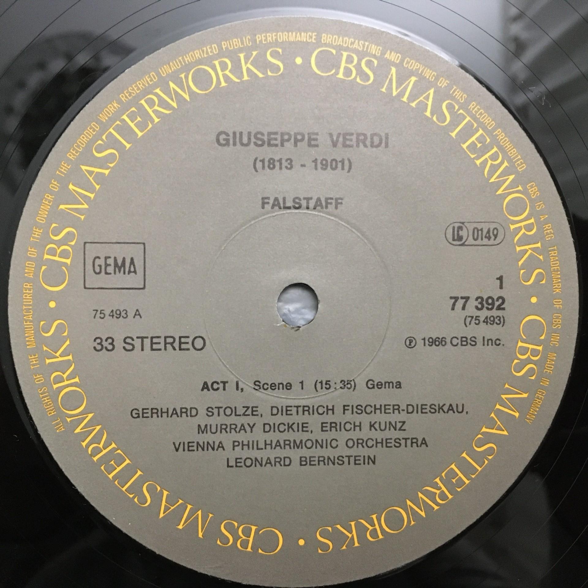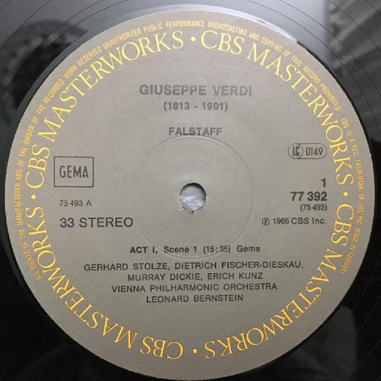 D841 Verdi Falstaff Fischer-Dieskau Panerai Bernstein VPO 3LP CBS 77392 Stereo