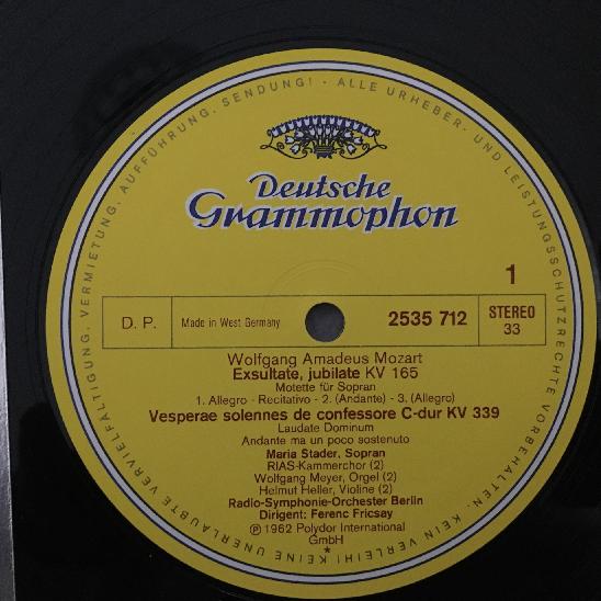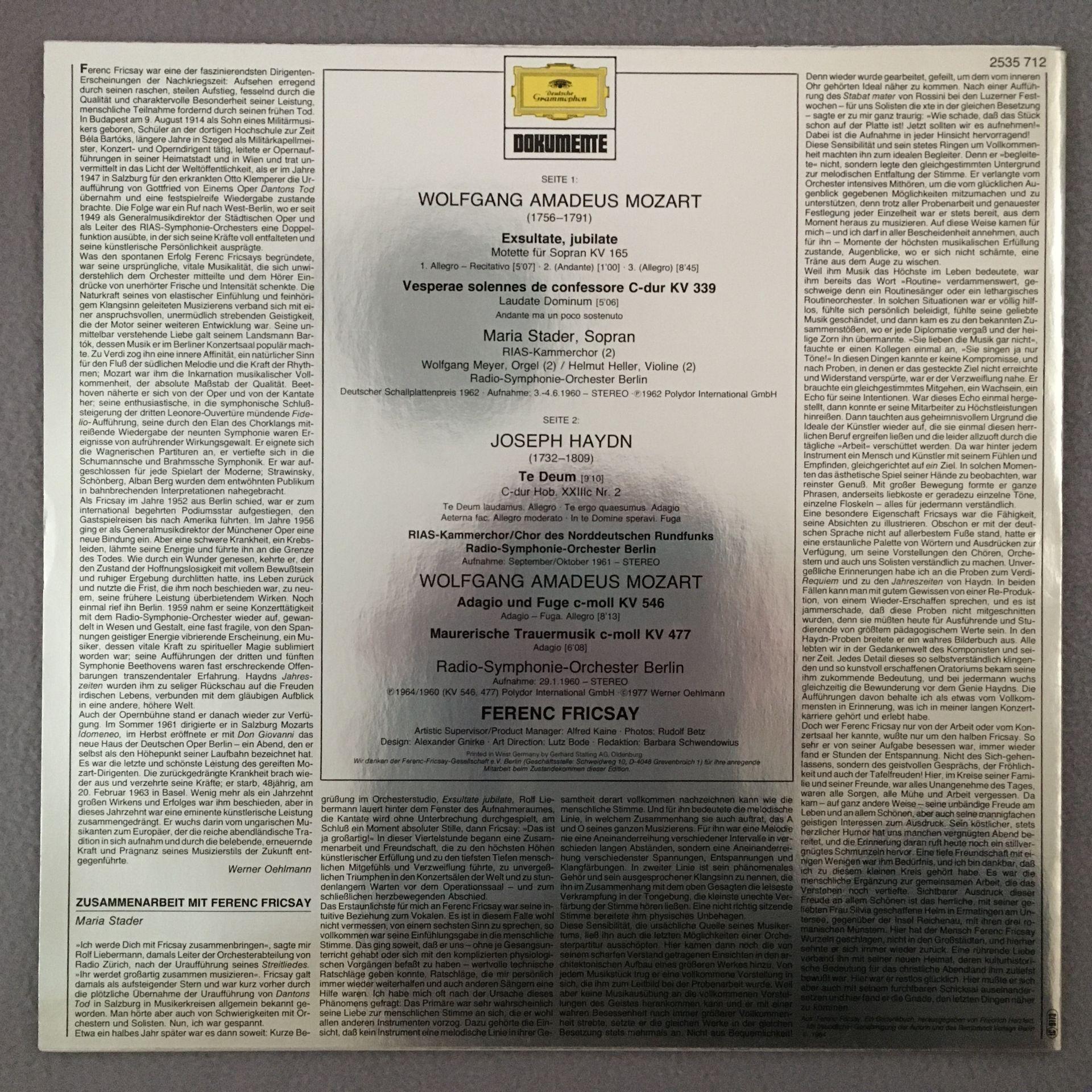 O821 Mozart Exsultate Jubilate Haydn Te Deum Fricsay DGG 2535 712 Stereo
